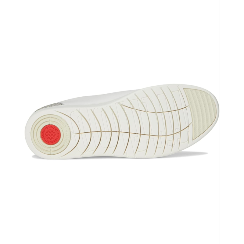 True classics. With clean styling and an old-school ''tennis shoe'' shape, the FitFlop Rally Crystal-Backtab Leather Trainers are the sneakers you can''t live without. The ones that''ll work with your whole wardrobe - jeans, dresses, tailored suits - season after season. These shoes are ergonomically engineered to help optimize your body''s alignment, natural movement, & energy. Their ultra-light all-day cushioning Anatomicush midsole with flex grooves across the bottom lets your feet move freely. The leather upper is styled with a shot of shimmer at the back. They are made of a rubber insole and mesh lining. APMA-accepted, these sneakers are softly padded and offer natural arch support. These lace-up sneakers will become your go-to choice on busy days when comfort is non-negotiable.
