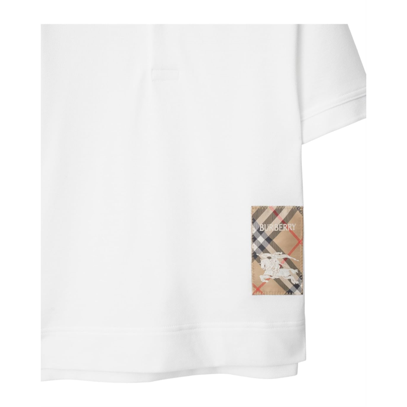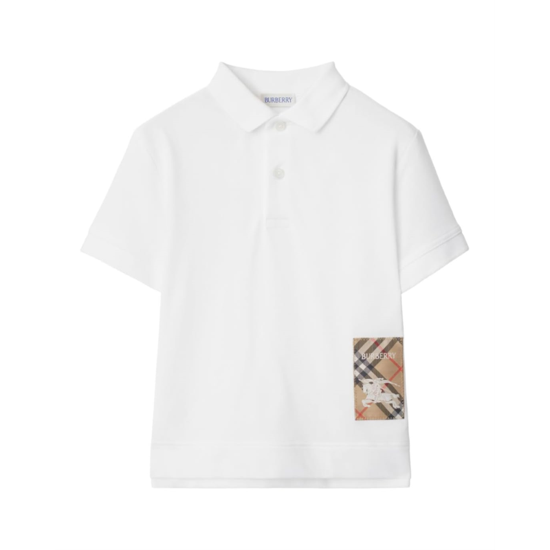 - Style up your look and keep up with comfort wearing Burberry Kids Johane EKD Label Polo Shirt. The classic fit polo shirt features a collared neck with a quarter-button closure, short sleeves, Burberry logo patch on the bottom-front, and a straight hem.