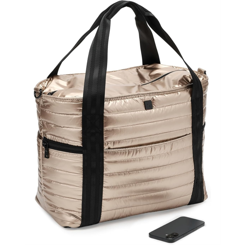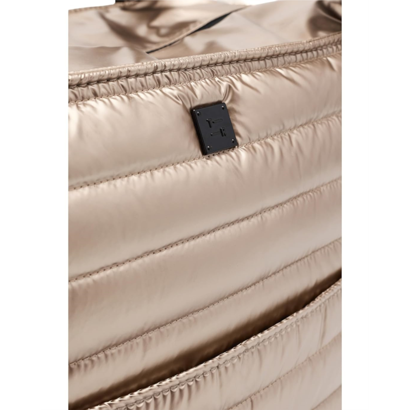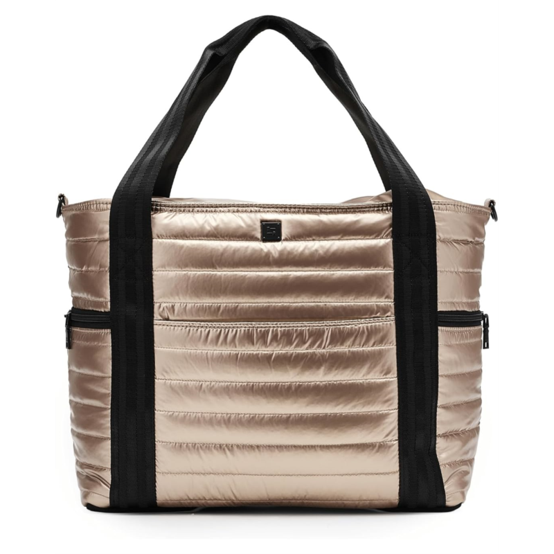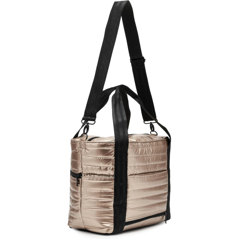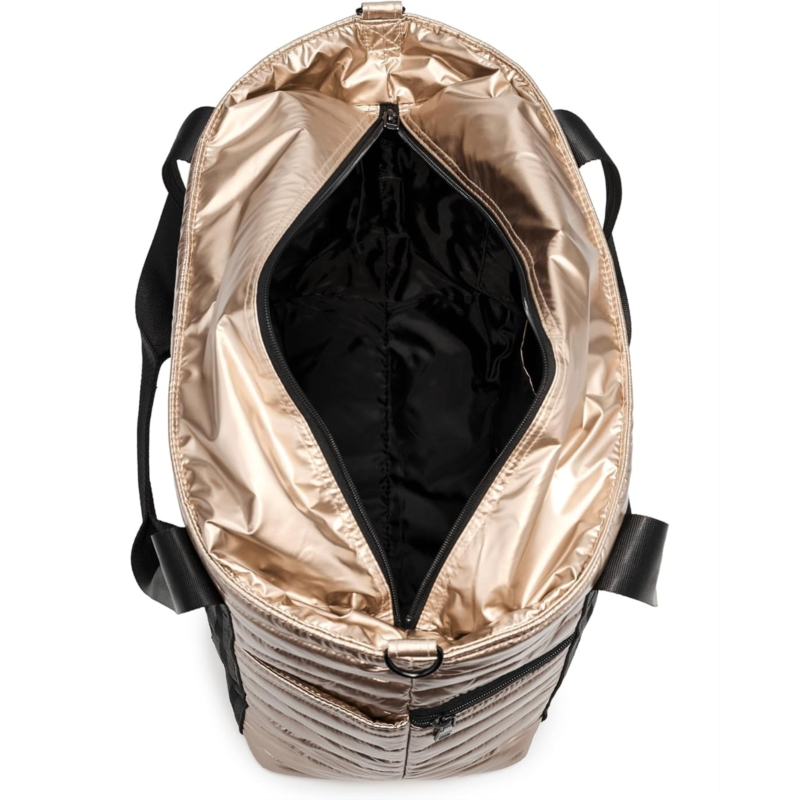 - Ready for takeoff? The Jetset Wingman by THINK ROYLN has you covered. This sleek, water-resistant tote combines high-fashion and smart functionality for those who live life on the move. Crafted from durable polyester with a chic chain strap, this bag is your ultimate travel companion. The detachable strap allows for versatile carrying, while the zippered closure ensures security. With a dedicated trolley sleeve and a plethora of pockets-ten to be exact-plus a spacious main compartment, youll stay organized and stylish from all-day adventures to far-off escapades.