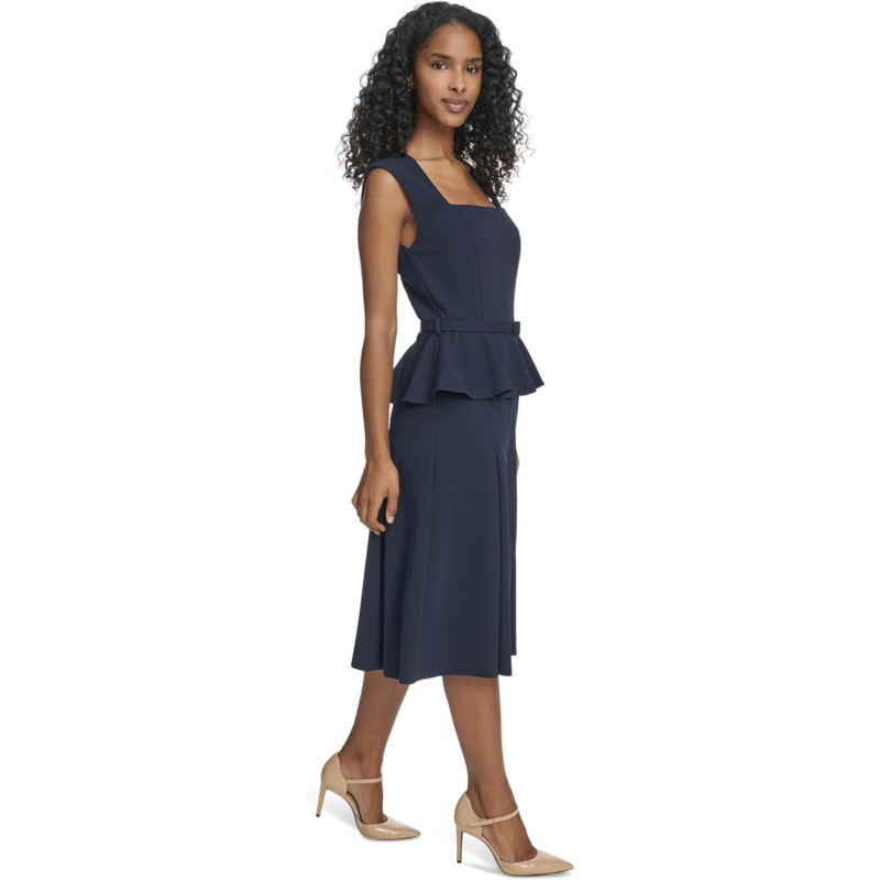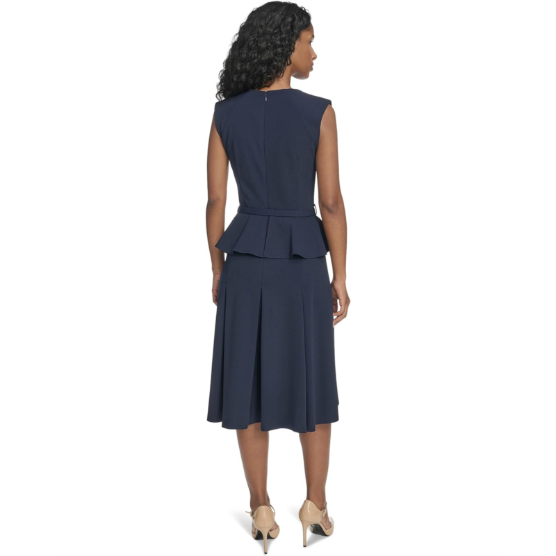Calvin Klein Short Sleeve Scuba Crepe Belted Peplum Aline dress.