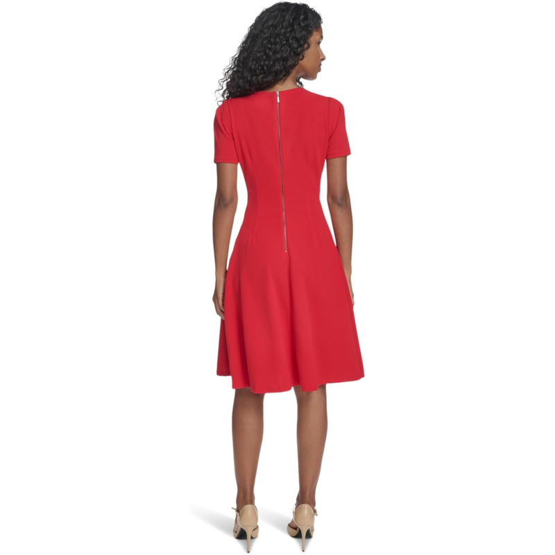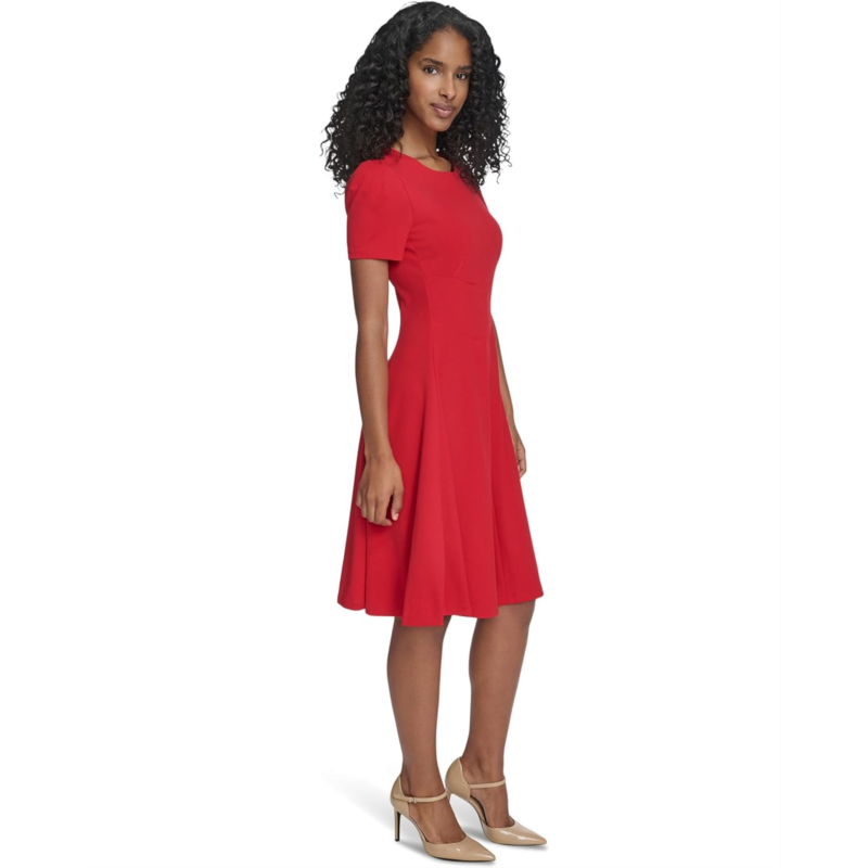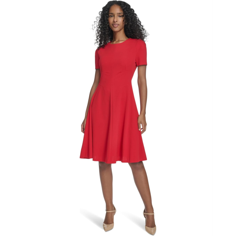 Calvin Klein Short Sleeve Scuba Crepe A-Line Dress.