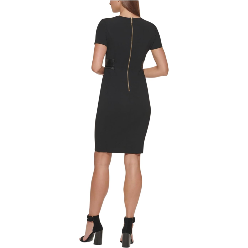 [US] Calvin Klein Scuba Crepe Short Sheath Dress with Faux Leather Belt