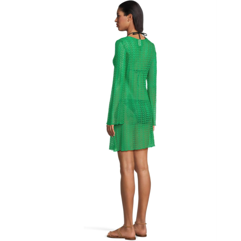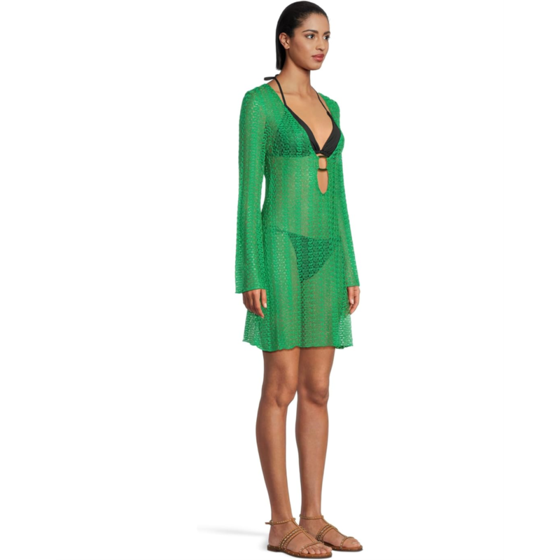 Lounge in luxury wearing the attractive BECCA Golden Crochet Buckle Tunic. Featuring intricate textured design with metallic accents and offers long sleeves with a plunging V-neckline, crochet knit and pull-on style.