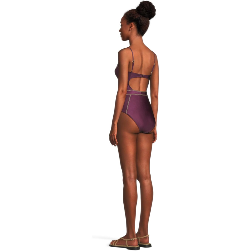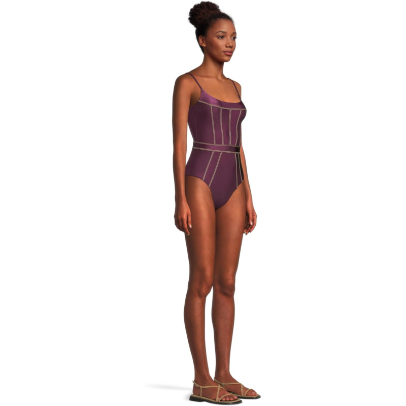 Make a statement by the water wearing the BECCA by Rebecca Virtue Color Sheen Makenna Corest One Piece. Crafted from a shiny satin stretch fabric, this swimsuit offers a luxurious feel and a sleek, form-fitting silhouette. The natural denim stitch detailing adds a touch of sophistication, ensuring you stand out in any setting. Featuring adjustable shoulder straps for a customized fit, and a hook-and-eye closure for added security, this swimsuit perfectly balances style and comfort.