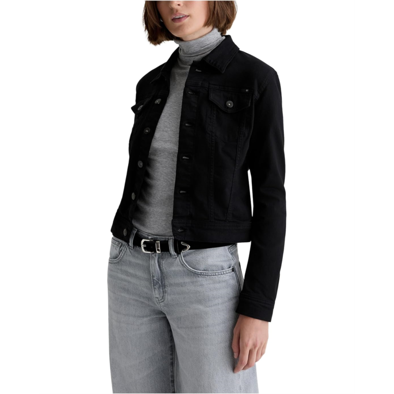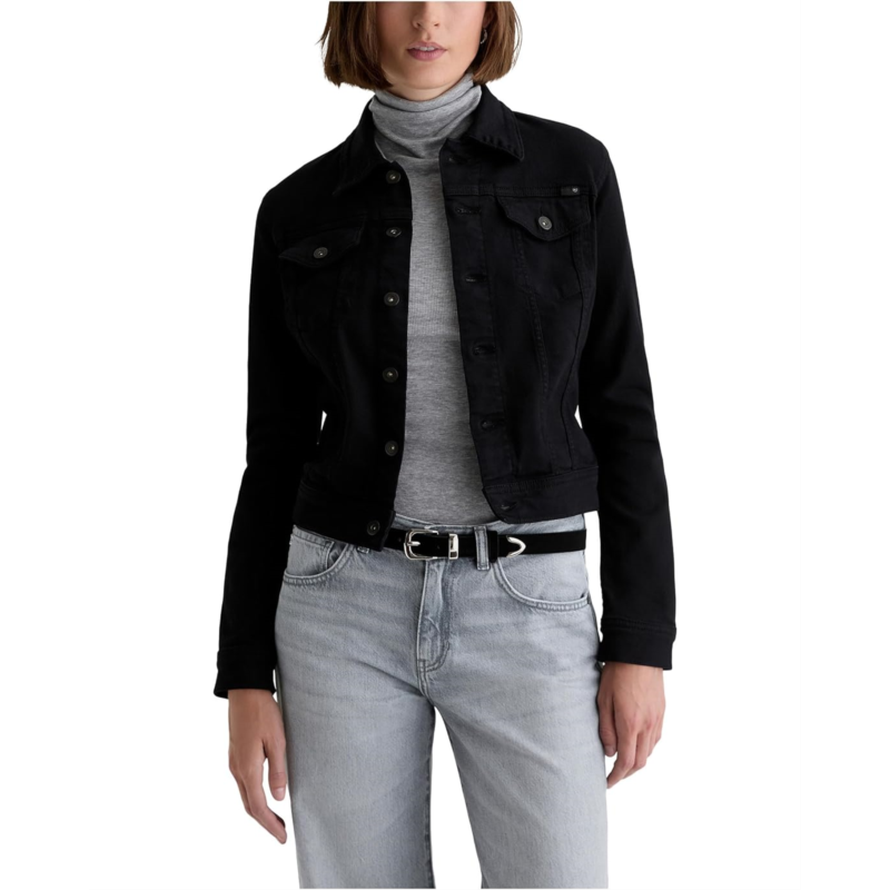 The Robyn Jacket by AG Jeans: where vintage vibes and today''s trends merge seamlessly. This tailored denim piece features a sleek, slim cut that contours to your body for a flattering fit. Designed with long sleeves, a collared neck, and a button front closure, it''s perfect for layering with a touch of sophistication. Two chest button pockets offer both function and flair, while adjustable waist tabs provide a customizable silhouette.
