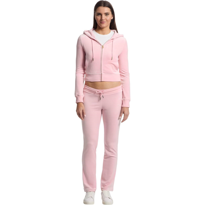 Express your inner fashionista this fall by pairing up your laid-back style or post-workout outfit with the Juicy Couture Solid Classic Juicy Hoodie With Back Bling. Designed in a super-soft, cozy, and luxe velour fabric, this layering essential features a hooded construction with adjustable drawstring, long sleeves with ribbed cuffs, full-length zippered front with an iconic gothic logo zipper pull, functional hand pockets, and a ribbed hem. All style of this hoodie lies in its shimmery logo embellishment at the back.