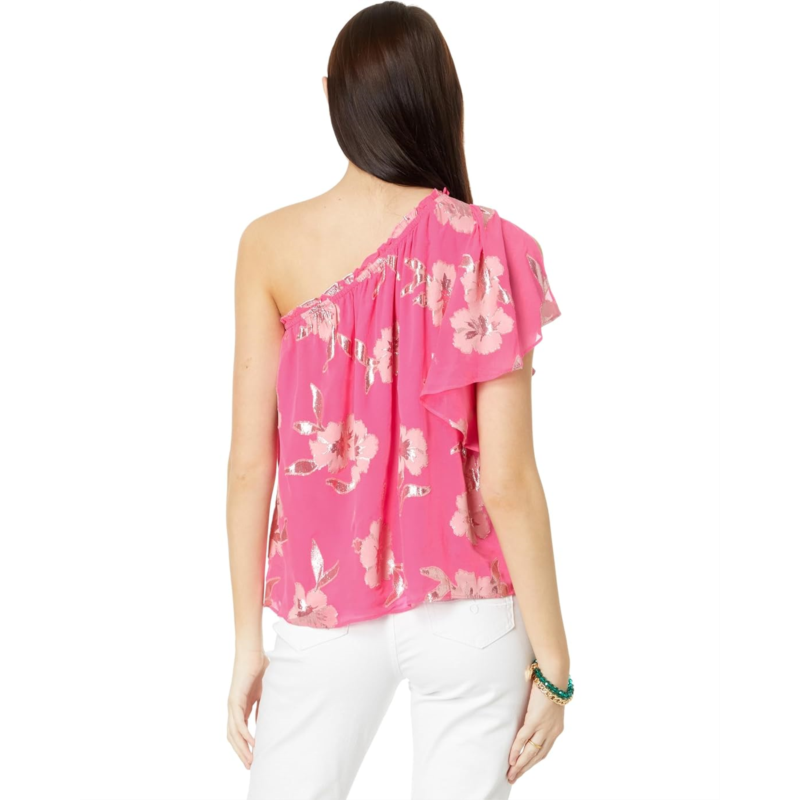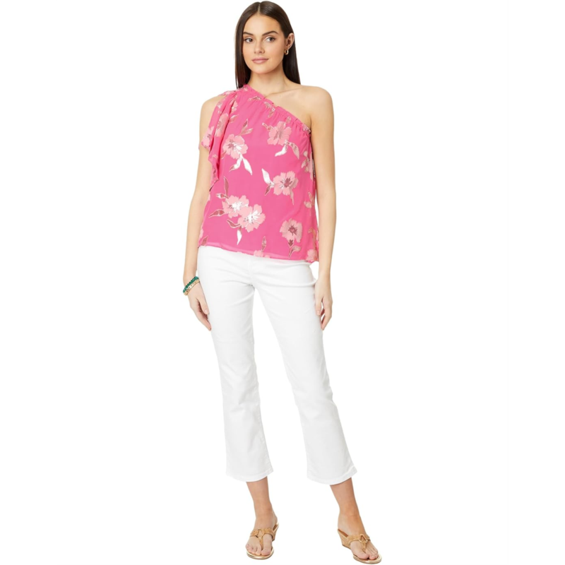 Show off your extraordinary feminine look donning the Show your Lilly Pulitzer Sarahleigh One Shoulder Silk Blend Top. The allover floral print top features pull-o construction, asymmetrical neckline with elasticized detailing, and one-shoulder split flounce sleeve.