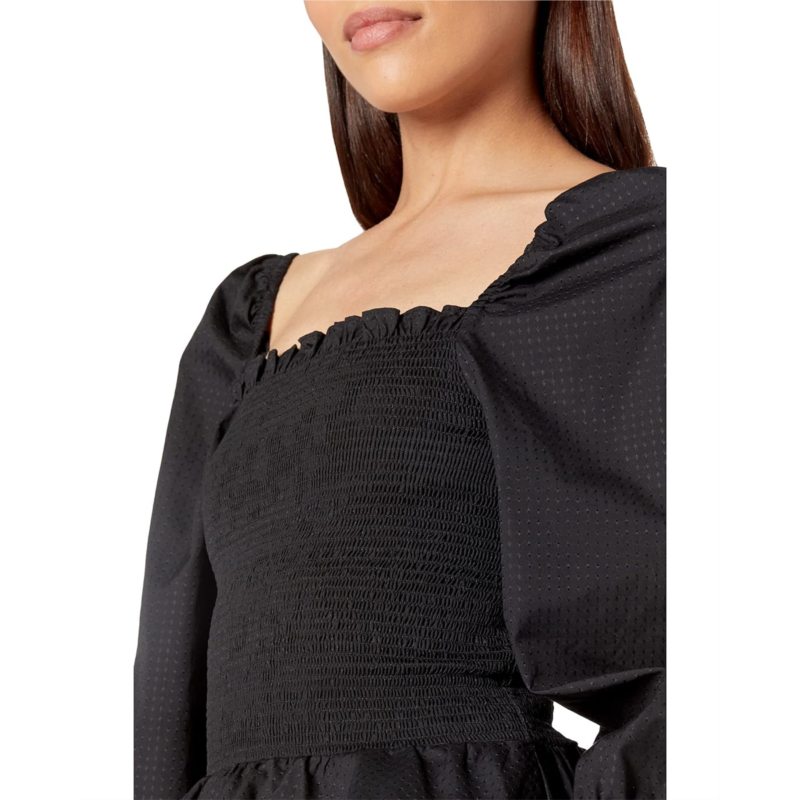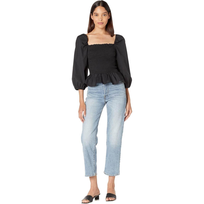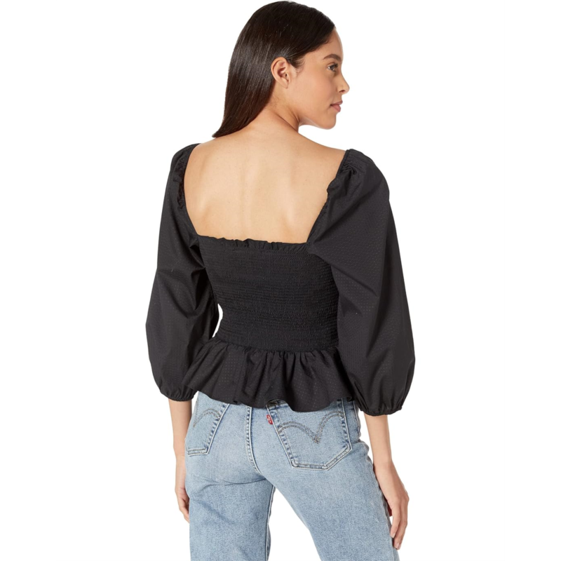 [US] BCBGMAXAZRIA Cotton Puff Sleeve Smocked Bodice Top