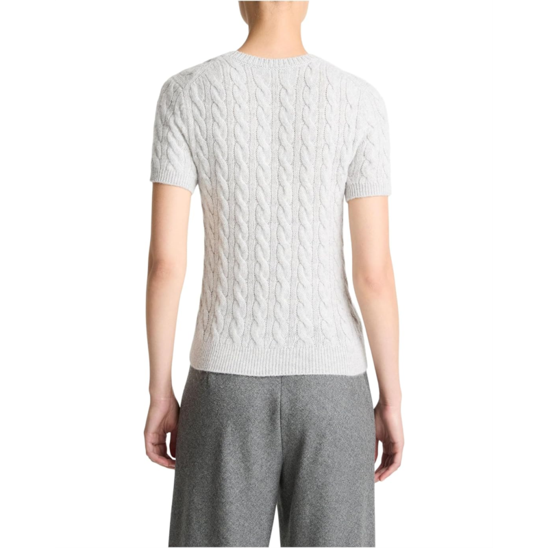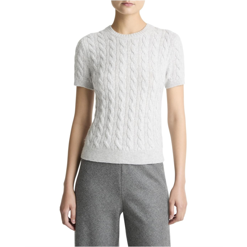 Give your knitwear wardrobe an upgrade! A sweater meets tee, this short-sleeve crew neck is cable knit from a sumptuous blend of wool and cashmere.