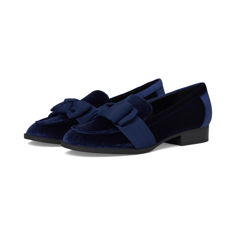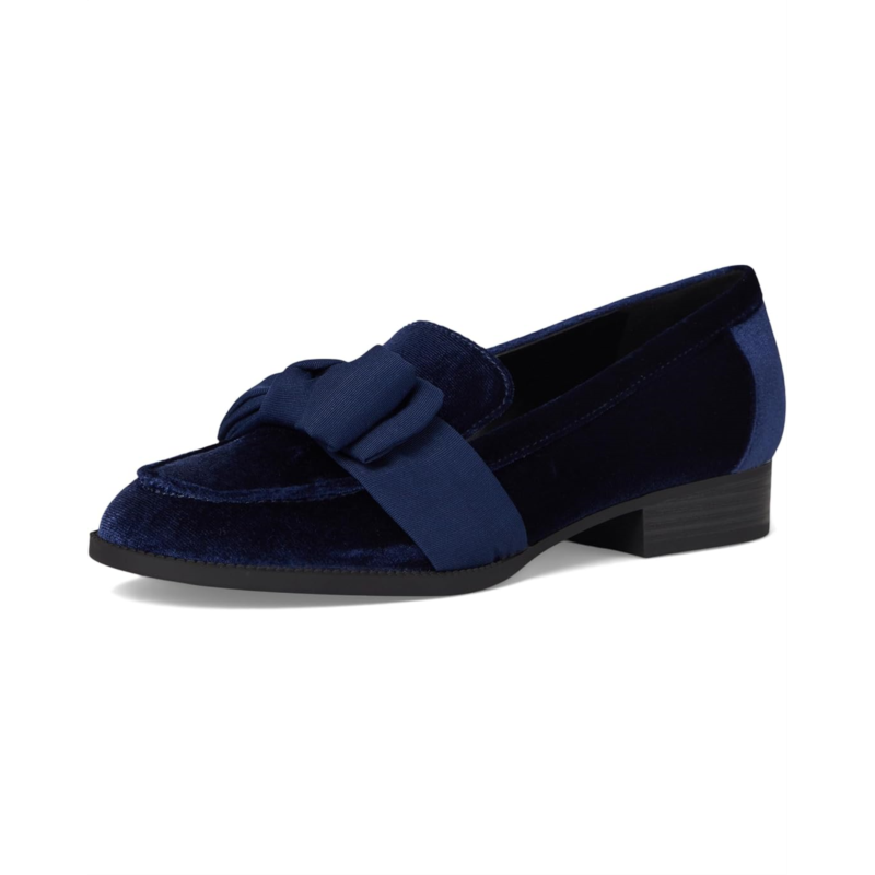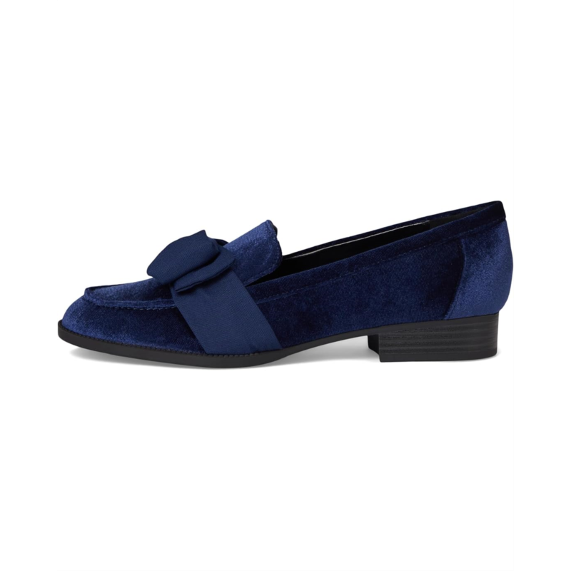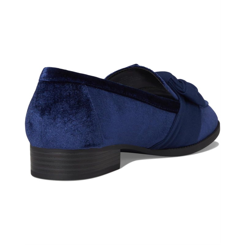 The Bandolino Lindio loafer achieves modern sophistication with slip-on entry, a chic vamp bow, and a low stacked block heel.