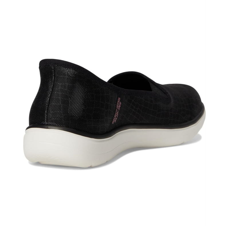 Stylish and versatile comfort combine wearing the SKECHERS Performance On-the-go Flex Radiant Hands Free Slip-ins - Ssiren shoes. Crafted with vegan materials. Designed with the Heel Pillow that holds your foot securely in place, skimmer style features a snake print woven upper, high-rebound Skechers Air-Cooled Goga Mat breathable insole, and lightweight responsive ULTRA GO cushioning.