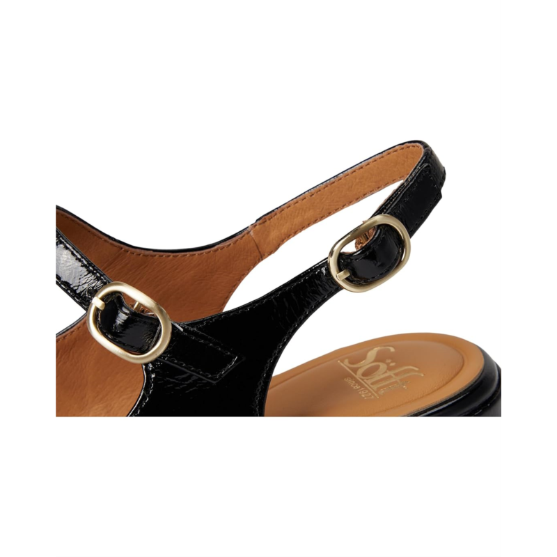 The Sofft Leyla stylish Mary Jane pumps feature a square toe and a sleek design. They come with a padded leather footbed, providing exceptional comfort for all-day wear. The leather lining and sock add a touch of luxury, while the slingback with adjustable buckle ensures a secure and customizable fit. The flexible rubber outsole offers excellent support and ease of movement.
