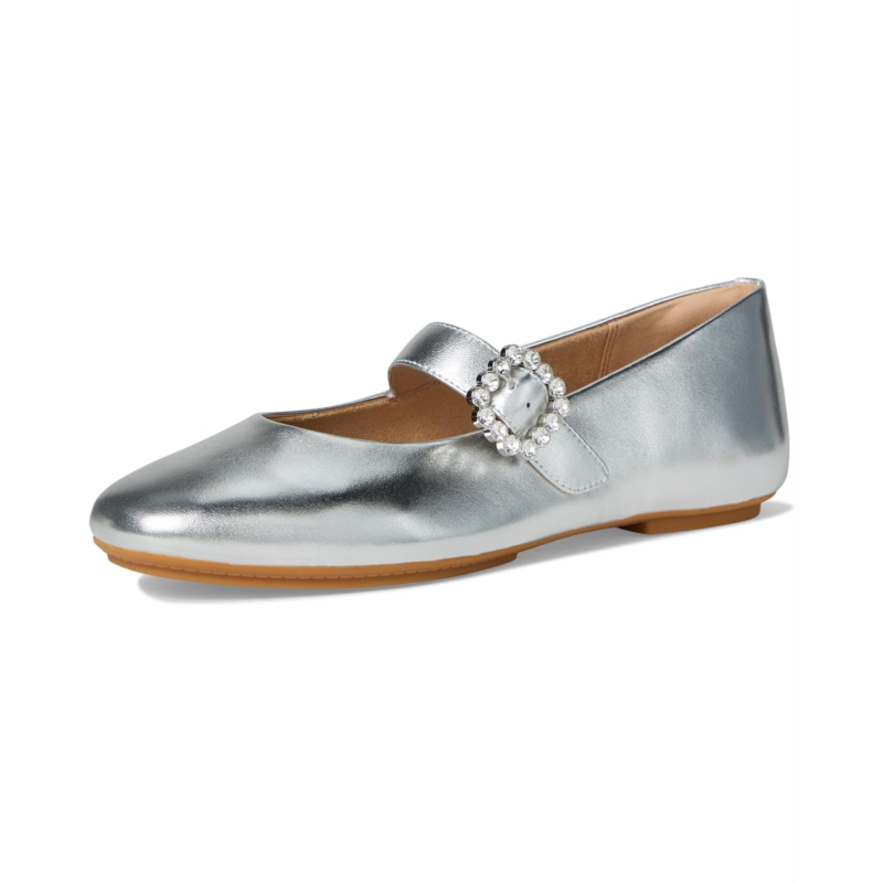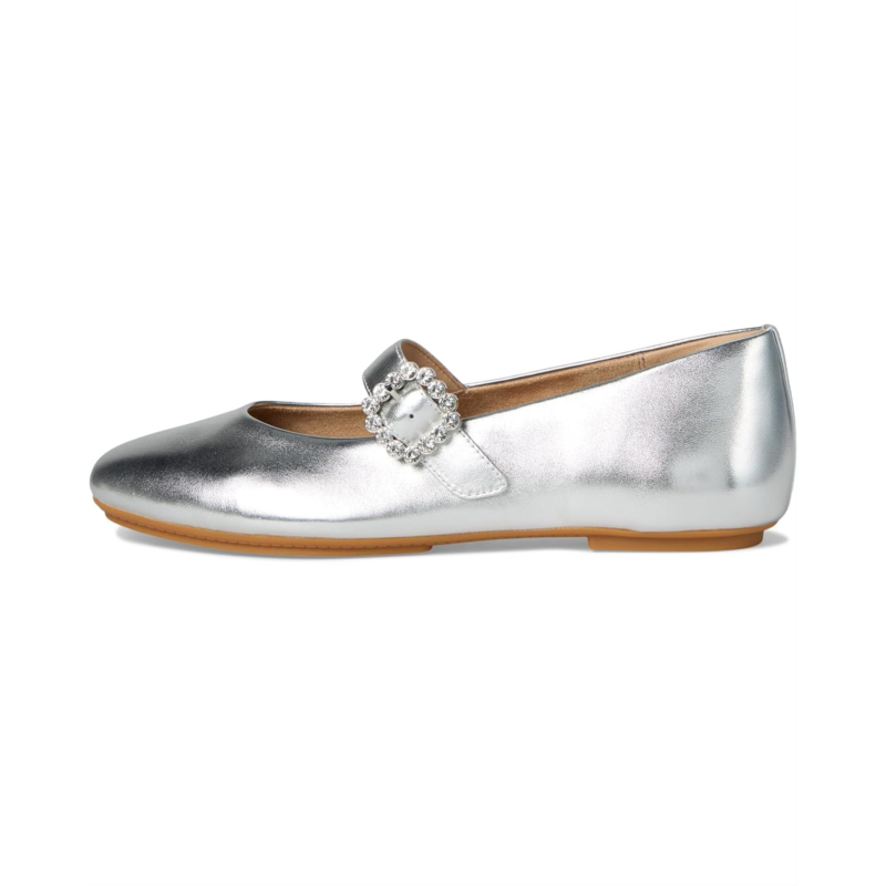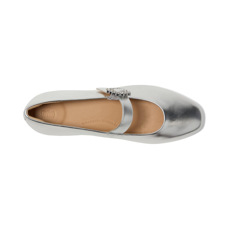 Clickhereto learn more about the biomechanically engineered, ergonomic FitFlop footbed.With the Delicato Crystal-buckle Leather Mary Janes, FitFlop has crafted the ultimate sleek Mary Jane shoes - sporting a slim low-profile silhouette yet that feels like a sneaker. In luxe butter-soft Nappa leather, these shoes have a slightly square toe design. Adorned by an elegant buckle, they feature sparkling ''crystals'' set in a silver base. Cut to fit beautifully, these heeled shoes are ultra-comfortable, thanks to their anatomically contoured EVA-foam footbed that diffuses pressure & gives natural arch support, and impact-reducing Dynamicush cushioning hidden in the outsole that maximizes comfort. Ergonomically engineered to help optimize your body''s alignment, natural movement, & energy, these low-top shoes are light, supple, and timeless-yet-trend-forward. They are made of polyester insole and lining. Their discreet elastic strap fastening ensures easy on/off, while the buckle strap gives adjustability & security. Whether you''re off to a party or dressing up in a casual look, these Mary Jane shoes are a great choice. These shoes have been granted the APMA* Seal of Acceptance, for footwear found to promote good foot health.