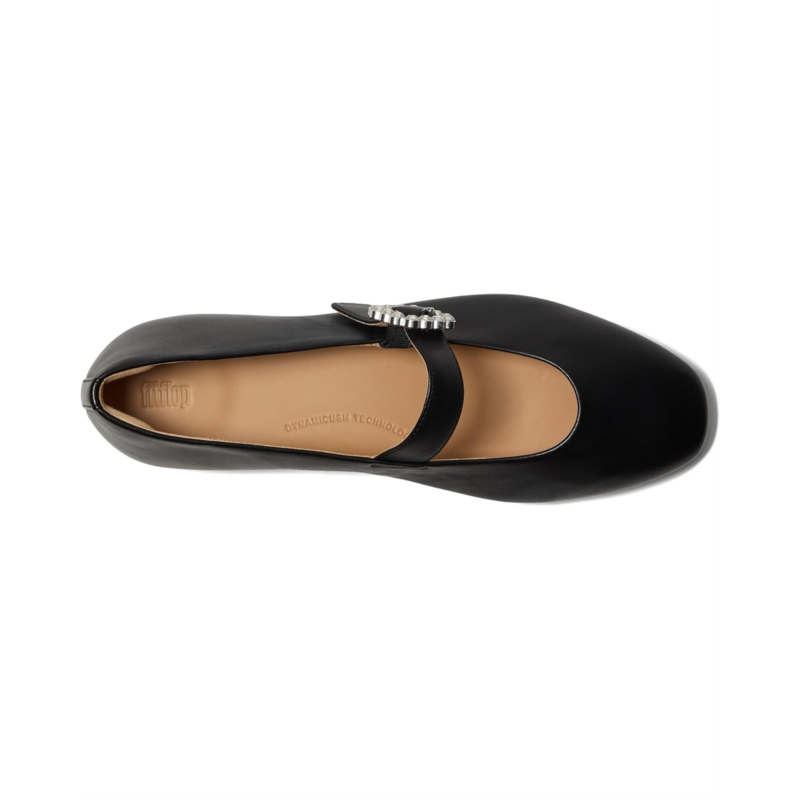Clickhereto learn more about the biomechanically engineered, ergonomic FitFlop footbed.With the Delicato Crystal-buckle Leather Mary Janes, FitFlop has crafted the ultimate sleek Mary Jane shoes - sporting a slim low-profile silhouette yet that feels like a sneaker. In luxe butter-soft Nappa leather, these shoes have a slightly square toe design. Adorned by an elegant buckle, they feature sparkling ''crystals'' set in a silver base. Cut to fit beautifully, these heeled shoes are ultra-comfortable, thanks to their anatomically contoured EVA-foam footbed that diffuses pressure & gives natural arch support, and impact-reducing Dynamicush cushioning hidden in the outsole that maximizes comfort. Ergonomically engineered to help optimize your body''s alignment, natural movement, & energy, these low-top shoes are light, supple, and timeless-yet-trend-forward. They are made of polyester insole and lining. Their discreet elastic strap fastening ensures easy on/off, while the buckle strap gives adjustability & security. Whether you''re off to a party or dressing up in a casual look, these Mary Jane shoes are a great choice. These shoes have been granted the APMA* Seal of Acceptance, for footwear found to promote good foot health.