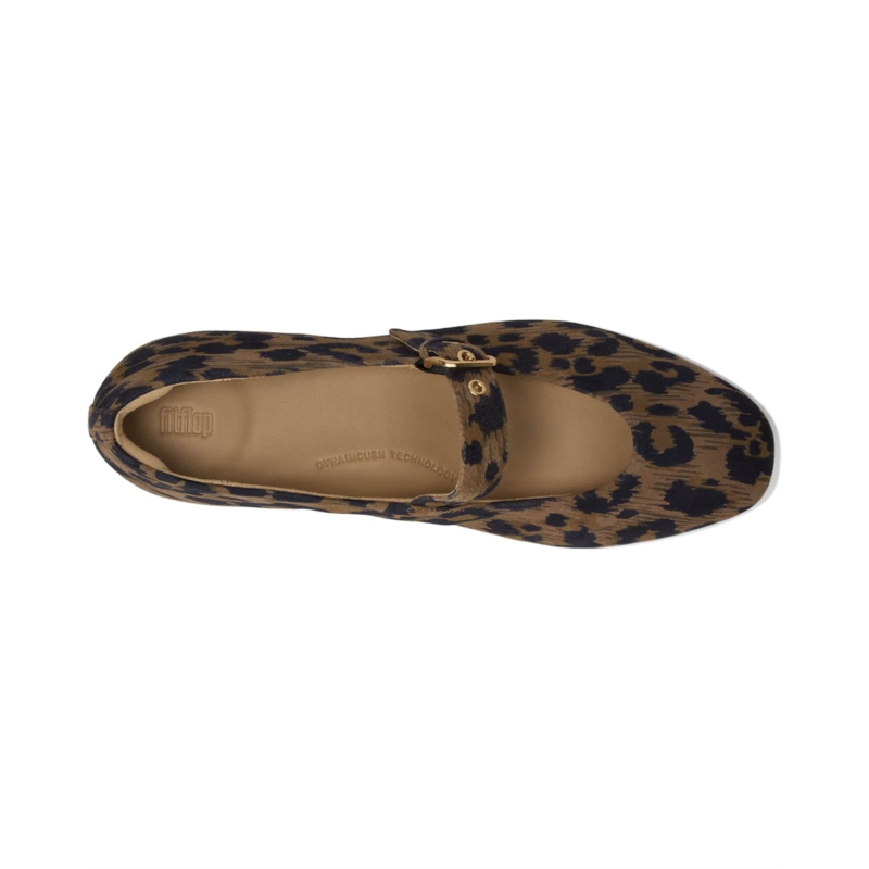With the Delicato Leopard Suede Mary Janes, FitFlop has crafted the ultimate sleek Mary Jane shoes - sporting a slim, low-profile silhouette yet that feels like a sneaker. In soft luxe suede, in a modern-abstract leopard print, these slip-on shoes feature clean lines and a slightly square toe design. A curvy buckle and feature eyelets add refined detail, while the ankle strap gives adjustability. Cut to fit beautifully, these heeled shoes are made of a polyester insole and lining. They are ultra comfortable thanks to their anatomically-contoured EVA foam footbed that diffuses pressure & gives natural arch support, and high-rebound impact-reducing Dynamicush cushioning hidden in the outsole that maximizes comfort. The elastic in the buckle fastening gives more flex. These shoes are ergonomically engineered to help optimize your body''s alignment, natural movement, & energy. Scotchgard-protected and APMA-accepted, these printed shoes are grip suited to everyday use/road tread.