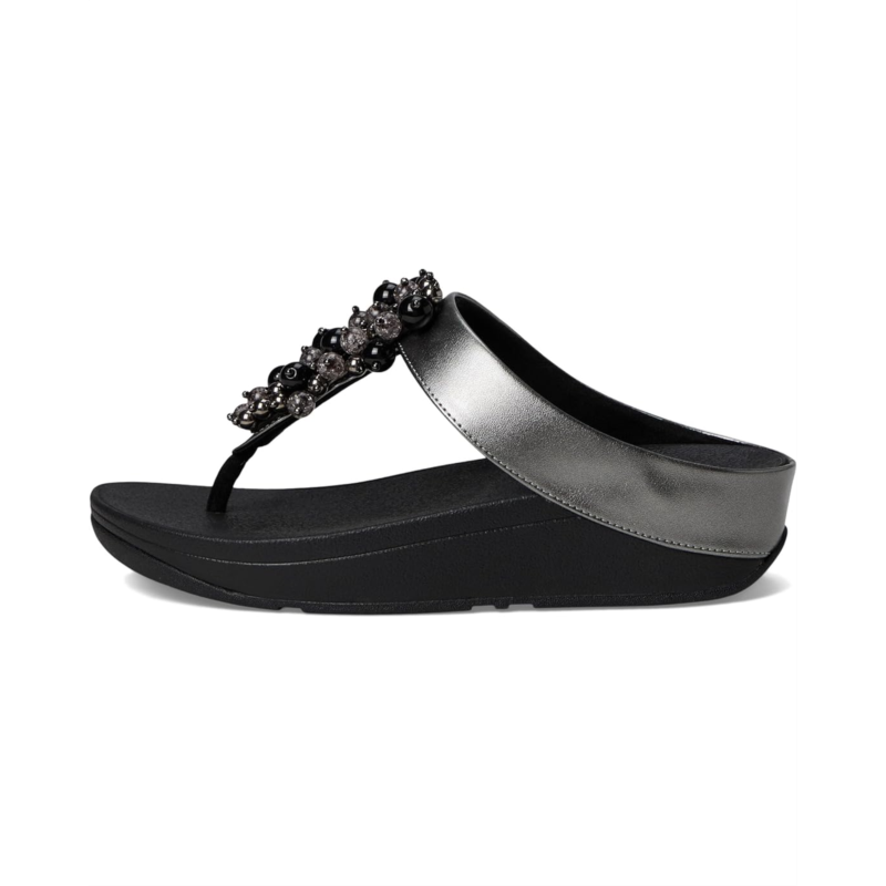 Boldly showcase your style with the FitFlop Fino Bauble-Bead Toe-Post Sandals. These sandals feature a cushioned footbed, soft toe post, and a pressure-diffusing Microwobbleboard midsole for all-day comfort. The metallic pearl faux-leather and glossy ''bauble-beads'' on the front strap add a touch of sparkle to any occasion. With a wedge heel and easy slip-on design, they''re perfect for daytime chic or evening extravagance.