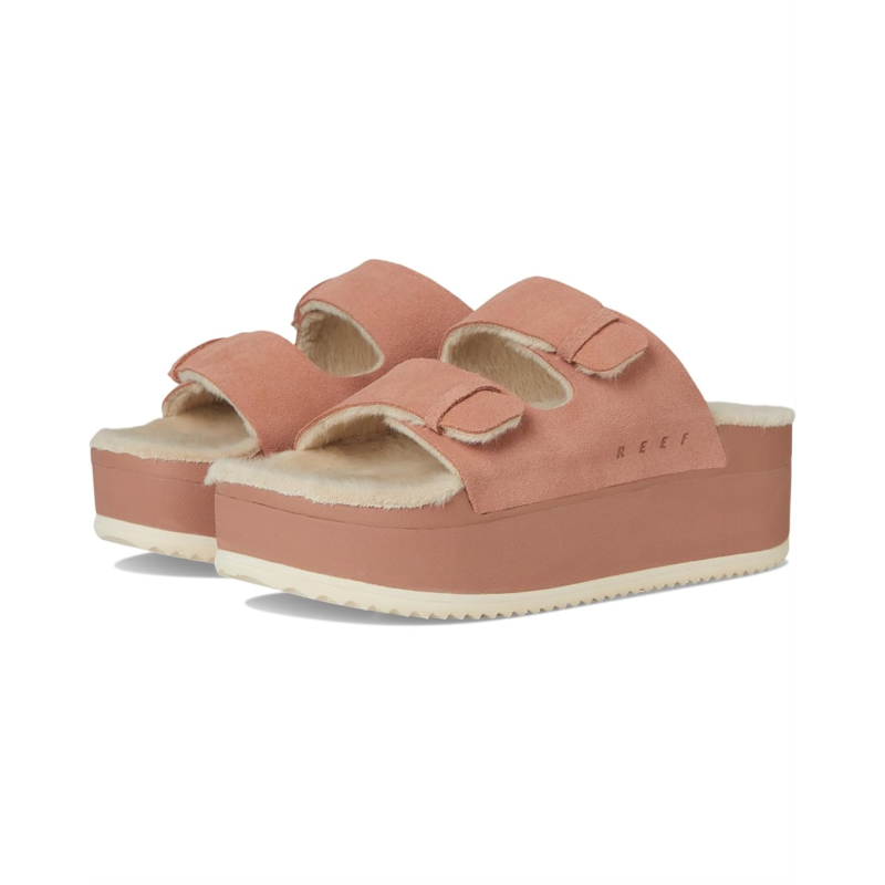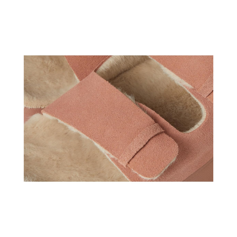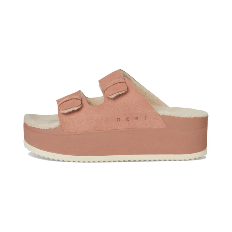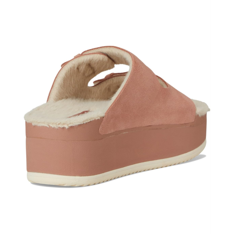 The Ojai Ciara is an approachable platform sandal with sophisticated comfort. It combines an anatomical faux fur footbed with a premium suede upper and height.