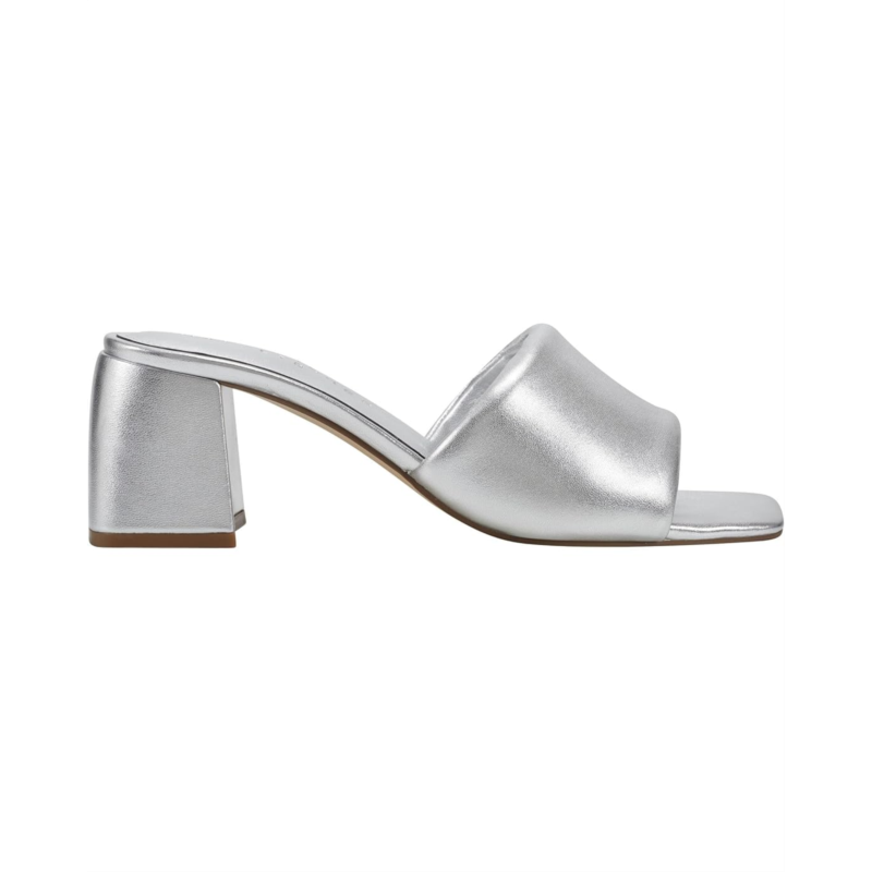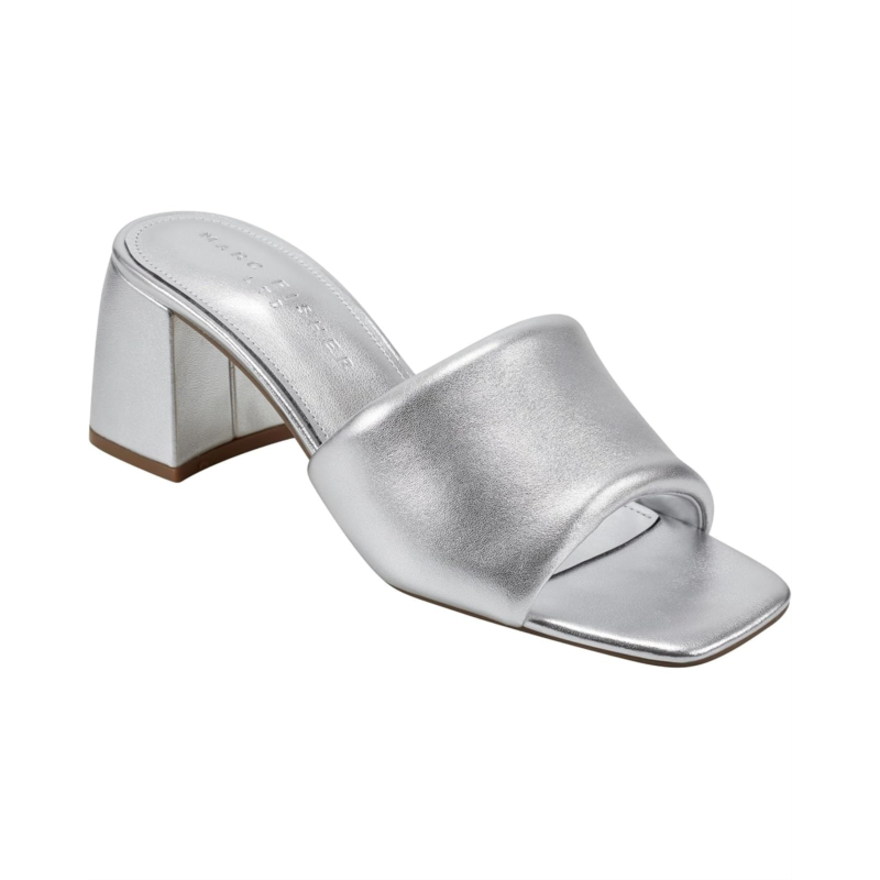 Flaunt your sophisticated and trendy look donning the Marc Fisher LTD Nombra. This mid-block heel features slip-on construction, open square toe design, and brand detailing on the footbed. It has a leather upper and man-made lining.