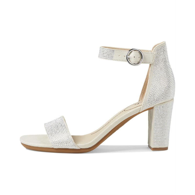 Sparkling rhinestones on the straps and heels for added style.
