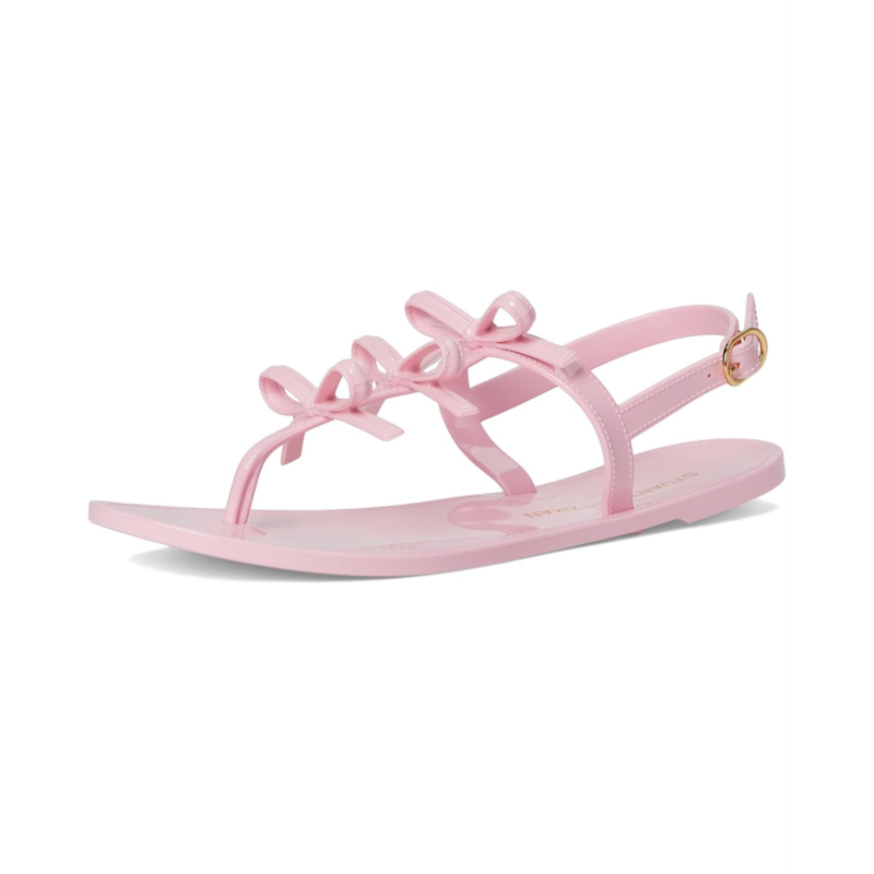 Step out in these strappy Stuart Weitzman FELICITY MULTI JELLY flats. The open toe pair features rubber upper, lining and cushioned footbed.