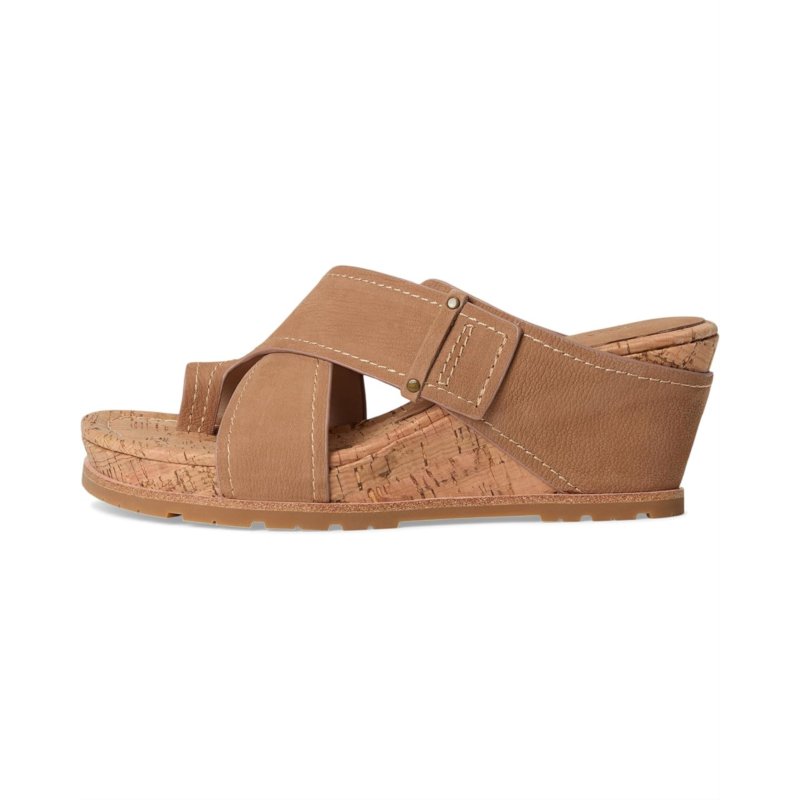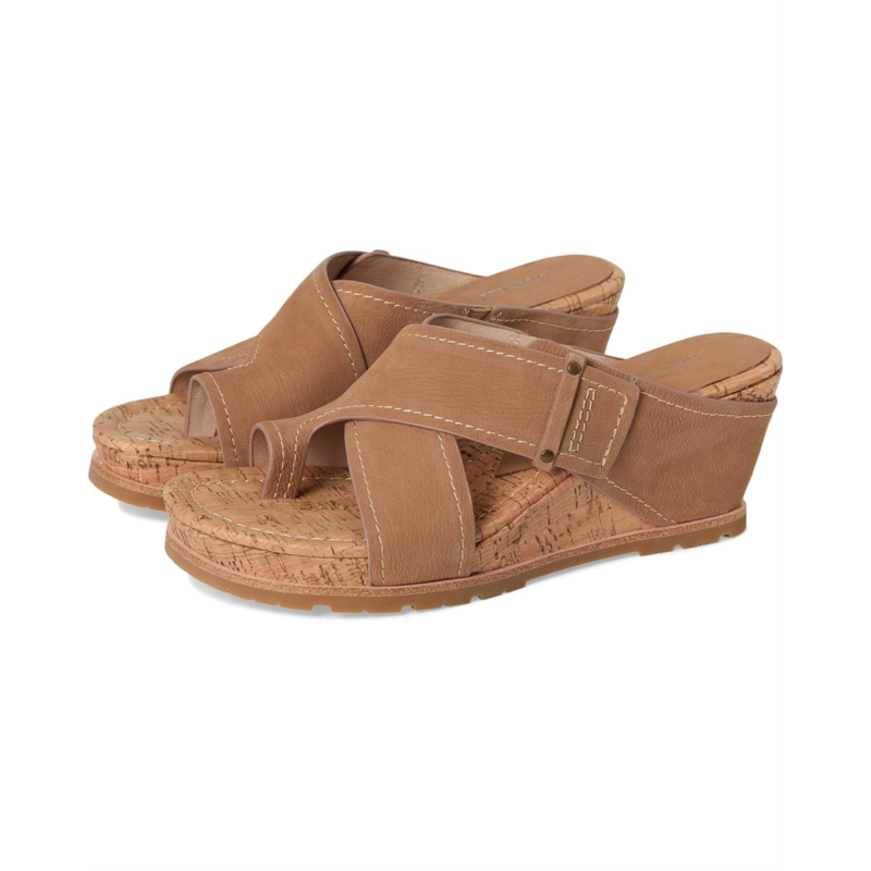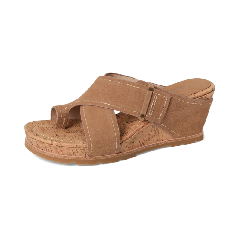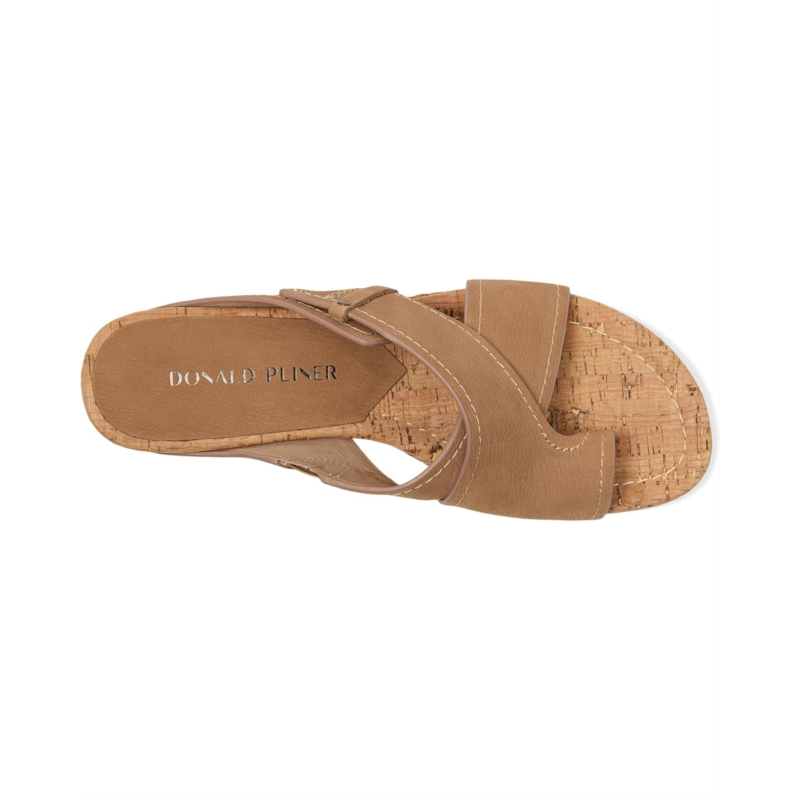 Equip your feet with unparalleled comfort and flexibility while depicting your elegant fashion sense wearing the Donald Pliner Irini Wedge Sandals. Topped with soft leather crossband upper straps, the shoes are integrated with memory foam cushioned leather insole for a comfortable wear and a lightweight raffia-covered or cork wedge for added style. They come in an easy slip-on style with a toe ring and hidden elastic on the straps.