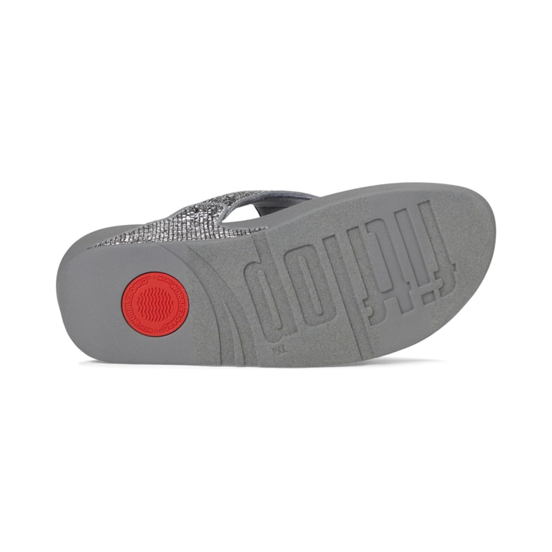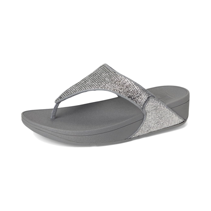 The FitFlop Lulu Crinkled-shimmer Toe-post Sandals are the brand''s bestselling sandals, boasting a timeless triangular vamp, softly padded polyurethane upper, and a soft microfiber toe post. Their ultra-comfortable Microwobbleboard midsole offers triple-density cushioning, often likened to walking on clouds. Ergonomically engineered to help optimize your body''s alignment, natural movement, & energy, they are made of a rubber insole and polyester lining. This season, crafted in a glittering crinkled-foil fabric, these toe-post sandals are an irresistible mix of shimmer and texture. Their tonal piping adds to their style. Offering natural arch support, these sandals are grip-suited to everyday use/road tread. Simple but glitzy, these slide sandals are APMA-accepted and equally good whether you''re doing daytime glamour or headed to a party.