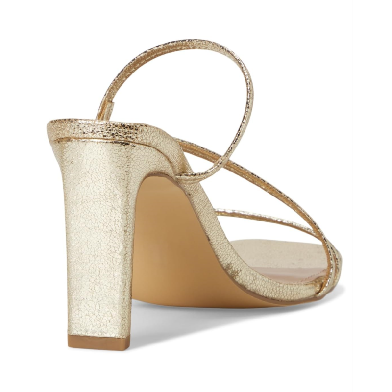 The DV by Dolce Vita Starlit is a strappy slip-on heeled sandal designed to elevate your look with sleek lines and modern polish. This dress sandal features a trio of slender asymmetrical straps that crisscross over the foot, creating a flattering silhouette. It''s built on a sculpted slim heel and finished with a square open toe. The slip-on design makes it easy to wear, while memory foam cushioning adds comfort for extended outings.