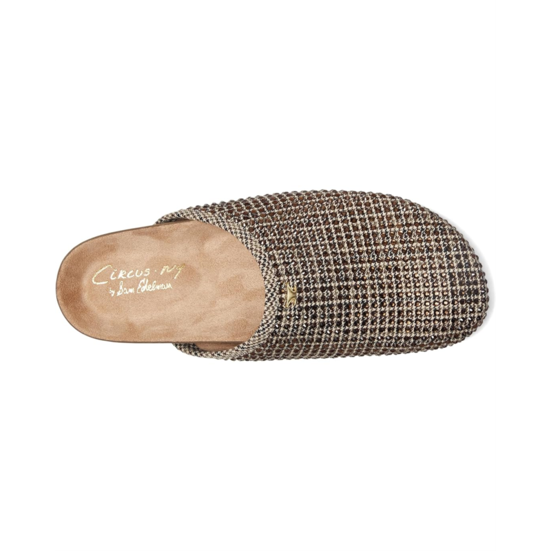 The Circus by Sam Edelman Sabina is a chic and playful slip-on clog that blends retro charm with modern flair. Featuring a houndstooth-patterned textile upper, it''s adorned with glistening rhinestones and signature logo hardware for a touch of sparkle. The contoured footbed ensures a customized, comfortable fit, while the flat heel and round toe offer easy wearability for everyday style.