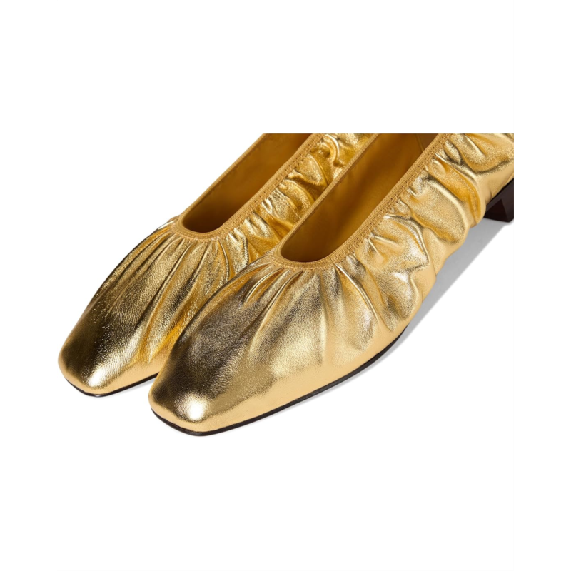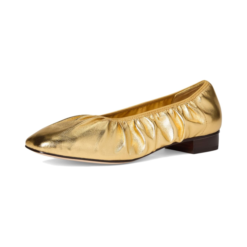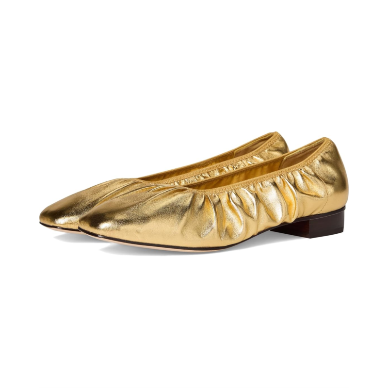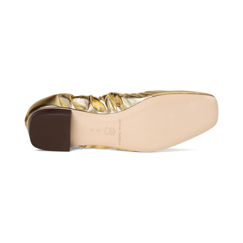 The Loeffler Randall Tove Ballet Pump is a refined classic elevated with a touch of shine. Crafted in metallic leather, it features a modern square toe and a slip-on silhouette for effortless wear. A padded footbed ensures comfort, while the low heel provides the perfect lift.
