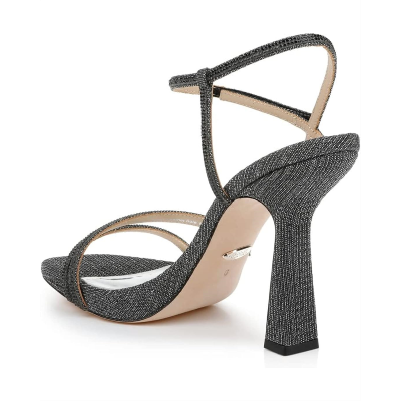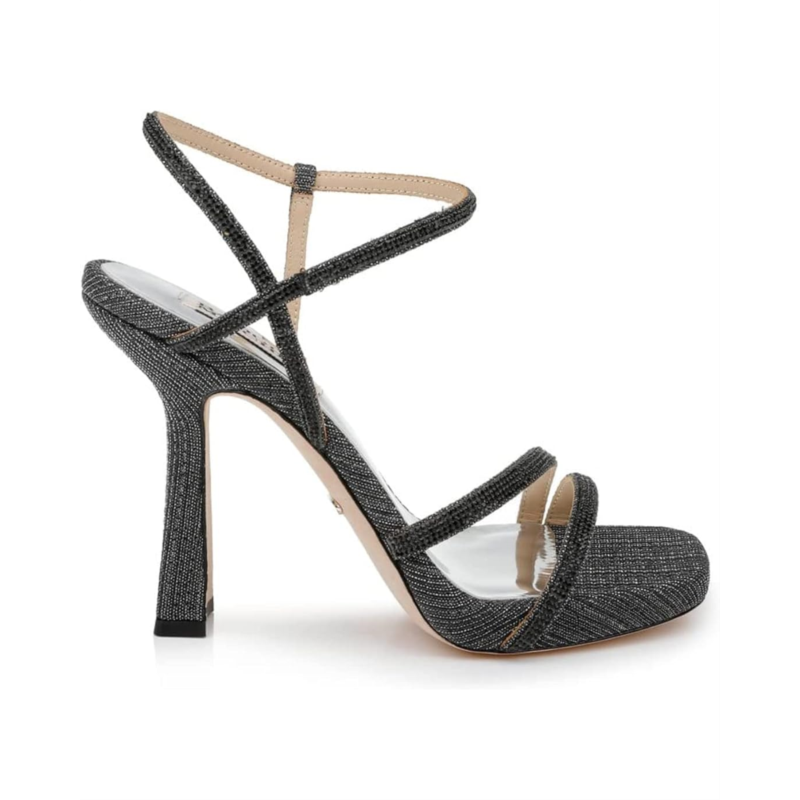 Strappy glittery textile upper.