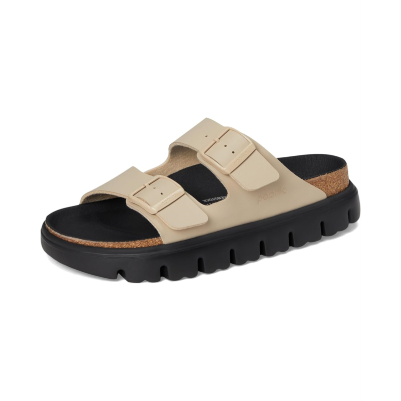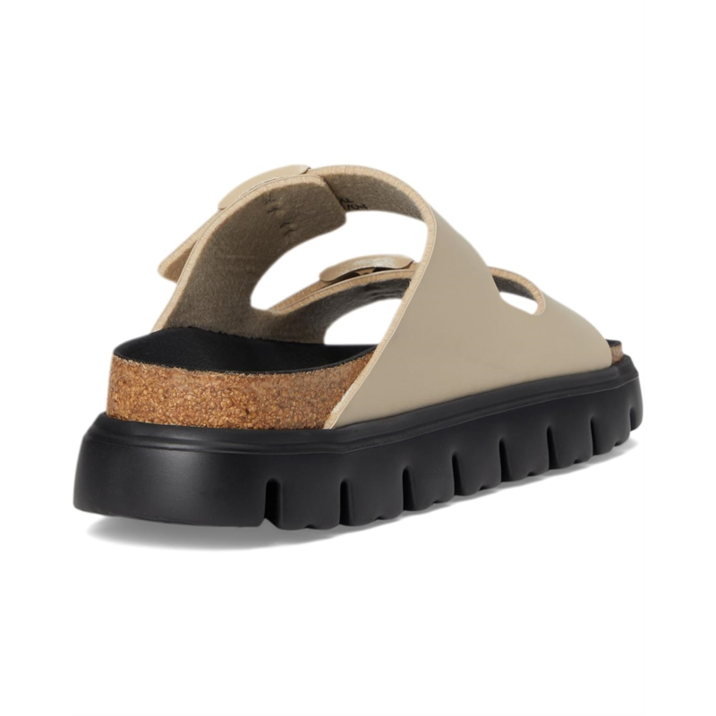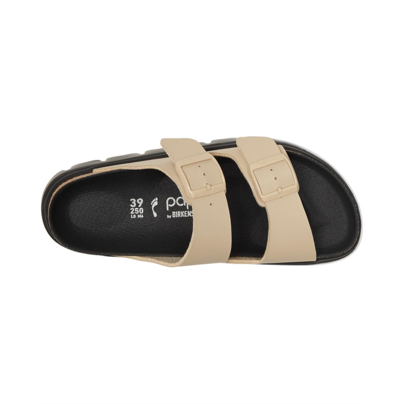 A platform sole takes the Arizona''s classic design to new heights?and your style along with it. Its smooth Birko-Flor upper creates an instant color contrast against its stacked sole. Featuring a contoured footbed that gives you the support of a BIRKENSTOCK sandal.