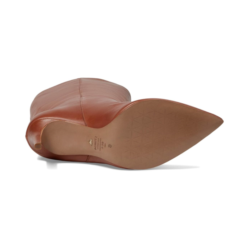 Elevate your footwear collection with the chic and classy Schutz Maryana Wide Boots. The pointed toe boots come in a calf-high silhouette with a stiletto heel and curved top. The pull-on style boots feature a leather upper, synthetic lining, and a foam insole for all-day comfort.