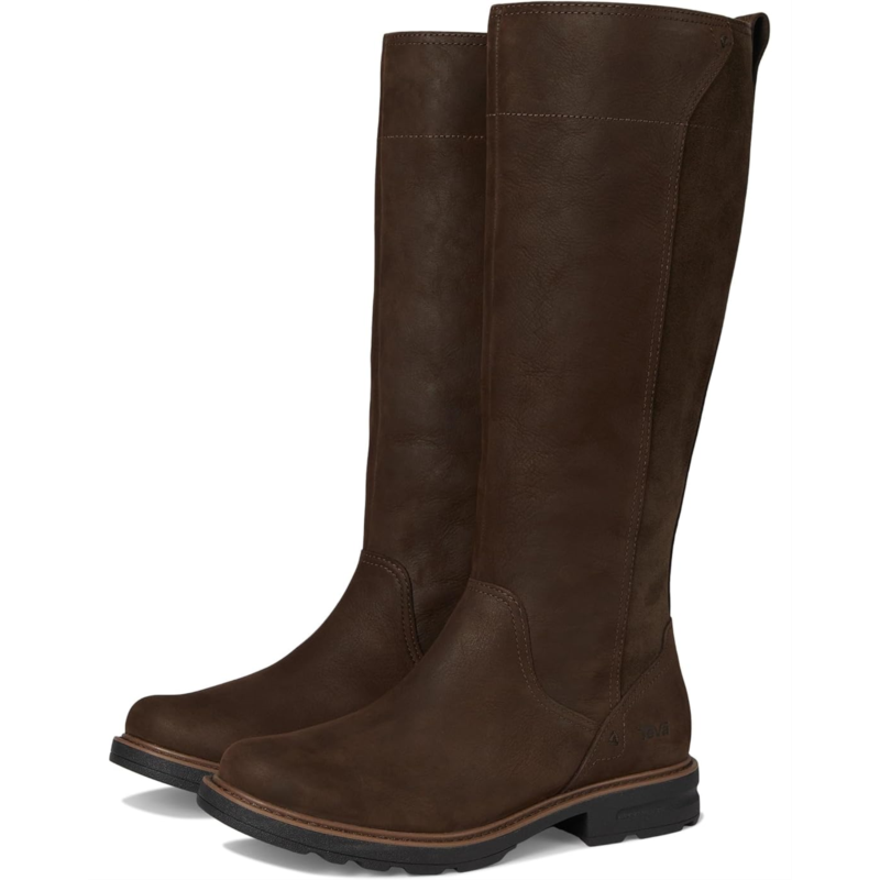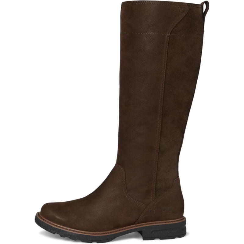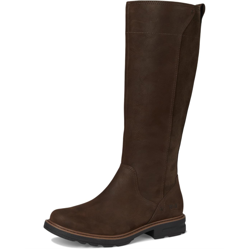 Crafted for the bold and modern women, the Teva ROWENA TALL boots are wardrobe essentials. Made from leather upper, fabric lining, and polyurethane insole, this pair of boots features round toe, knee-high silhouette, zippered side closure, elastic gore stretches to provide a great fit, and Teva MAX-COMF insole technology that delivers long-lasting, enhanced support via a cushy, memory foam topsole, a layer of durable foam and a footbed cover made from recycled content for game-changing comfort.