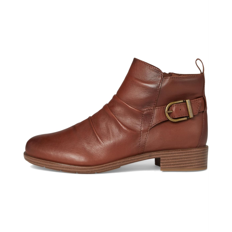 Let your free spirit soar in the Cobb Hill Nessa casual booties. It features ruching on the upper, exceptional arch support and flexibility in the outsole. Plus, it offers a cushioned footbed to take these booties from essential to incredible. It features round toe, buckle detailing, and low heel detailing.