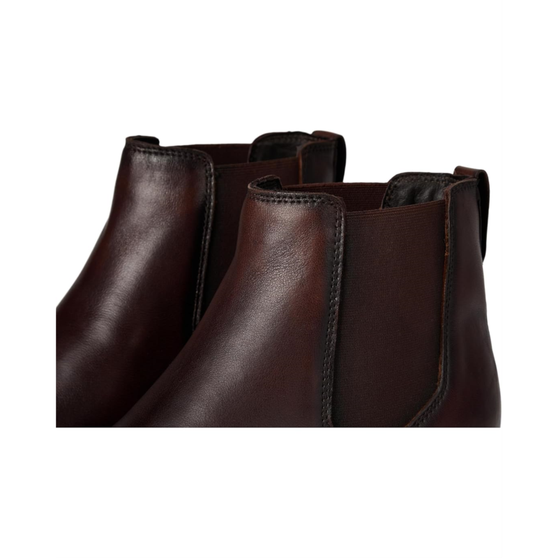 Classic Chelsea boot with elastic goring and stacked heel.