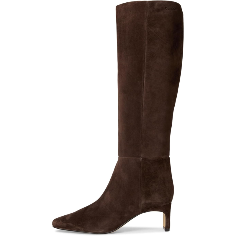 Effortless power dressing, Calvin Klein Caterine. These knee-high dress boots redefine chic with their faux leather upper, sleek square toe, and flared heel that elongates your silhouette. The textile and man-made lining ensure comfort from evening cocktails to late-night adventures, while the EVA outsole delivers lightweight flexibility with every step. A zippered side closure makes slipping in effortless, and the high shaft adds drama and flair to any outfit, from mini dresses to tailored pants. Designed to elevate your look, the Caterine boots are the ultimate finishing touch for nights out or stylish city strolls.