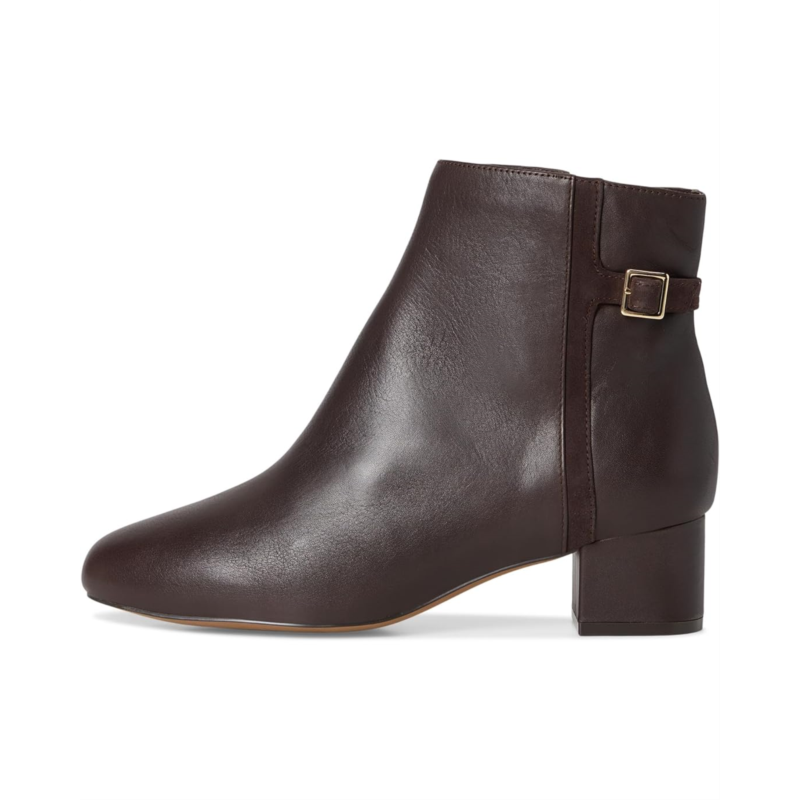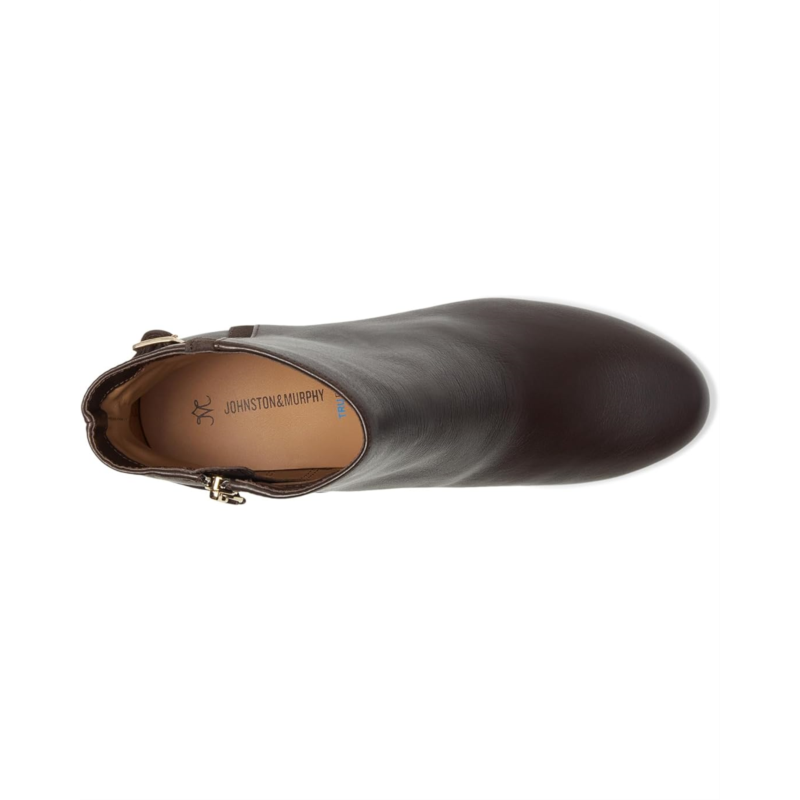 Fashion and functionality come together in the Johnston & Murphy Sienna Belted Bootie. The ankle-high boots are crafted with a soft Nappa leather upper, leather lining, and a lightweight TRUFOAM molded footbed with arch support that provides ultra cushioning for all-day comfort. These feature a pointed toe silhouette and a block heel detail for an elevated style. Plus, the full inside zipper closure allows for easy on/off.