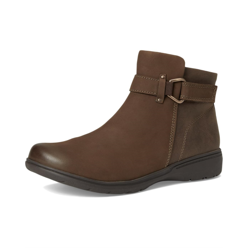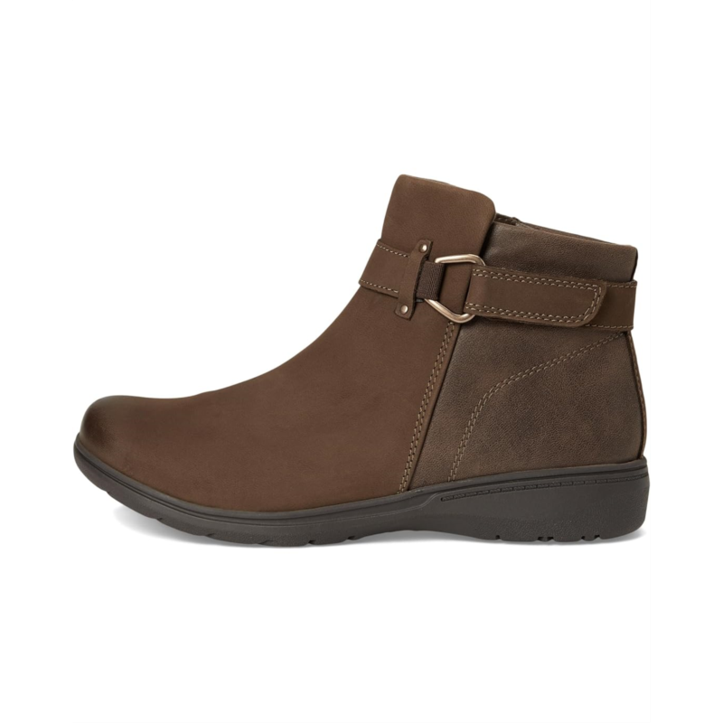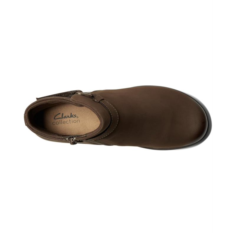 The Clarks Carleigh Drift is a casual ankle boot crafted from premium, durable materials, designed to bring effortless style and comfort to your shoedrobe. Featuring subtle hardware detailing and an internal zip for easy entry, it also includes an adjustable riptape strap for a secure, customized fit. Underfoot, the flexible thermoplastic rubber outsole ensures reliable traction, while Clarks'' signature Ultimate Comfort foam footbed delivers plush cushioning that lasts all day.