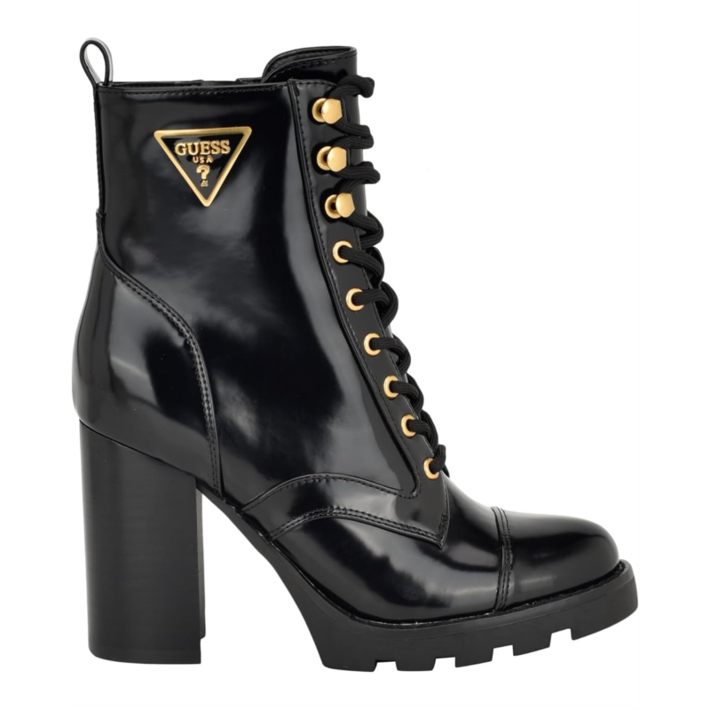 Elevate your fall-ready look in the GUESS Neadyn bootie. Featuring a lace-up with inside zipper, round toe silhouette with a sturdy block heel and pull tab in back.