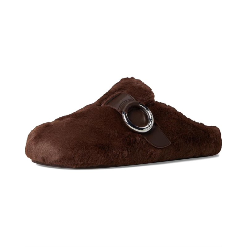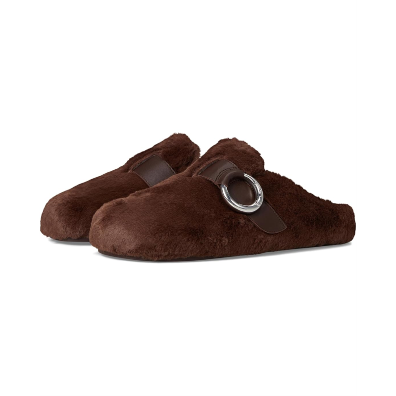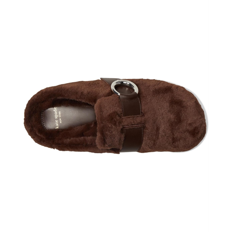 The Kate Spade New York Halo Clogs are slip-on clogs that are made of suede for a soft feel and added durability. They are made of a wool insole and a fluffy faux fur lining. The unique ring-shaped hardware offers a timeless appeal. These clogs are a great choice for lounging at home or going out for a casual walk.