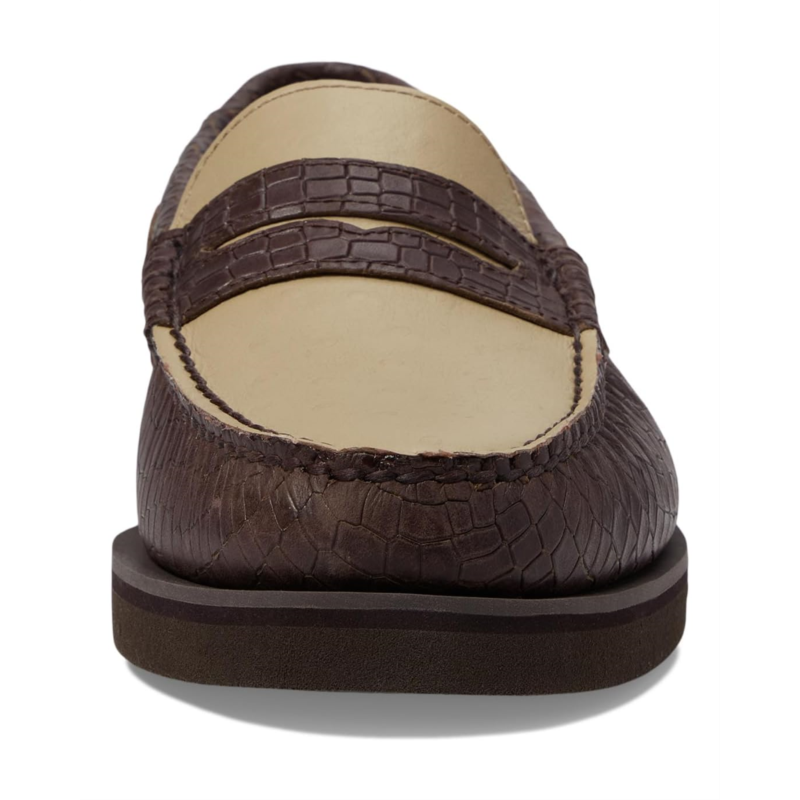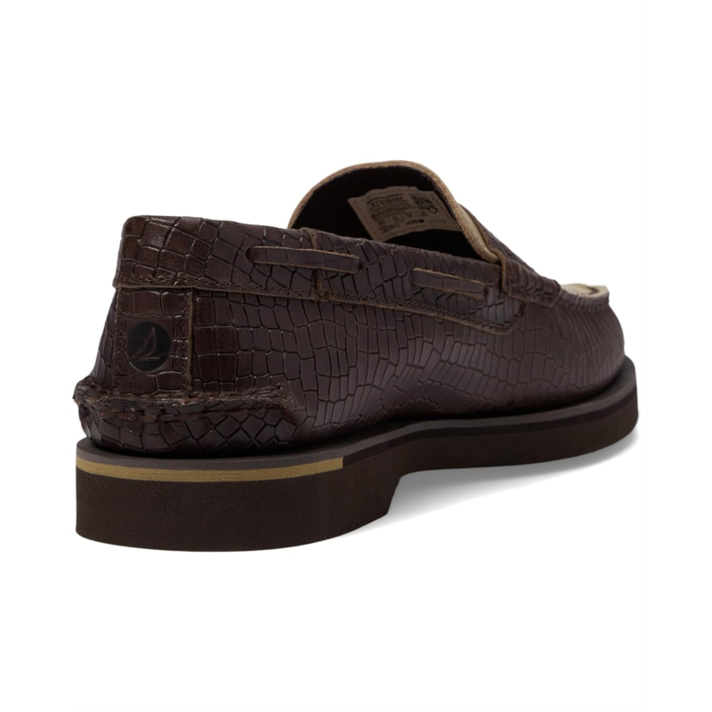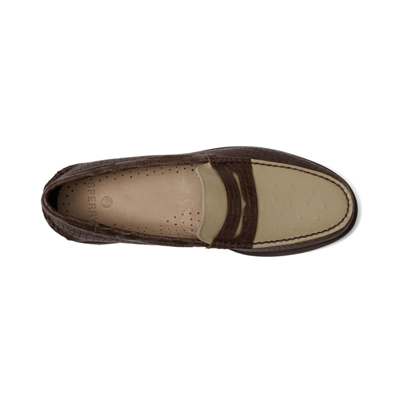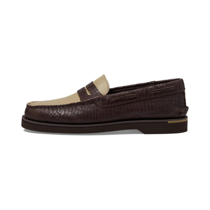 With a tough outer look, the Sperry A/O Penny Double Sole Boat Shoes provide all-day support through the cushioned Ortholite insole. Made with lightweight Elevated PLUSHWAVE double sole, this slip-on footwear has a two-toned design with nubuck leather upper construction and hand-sewn moccasin toe silhouette.
