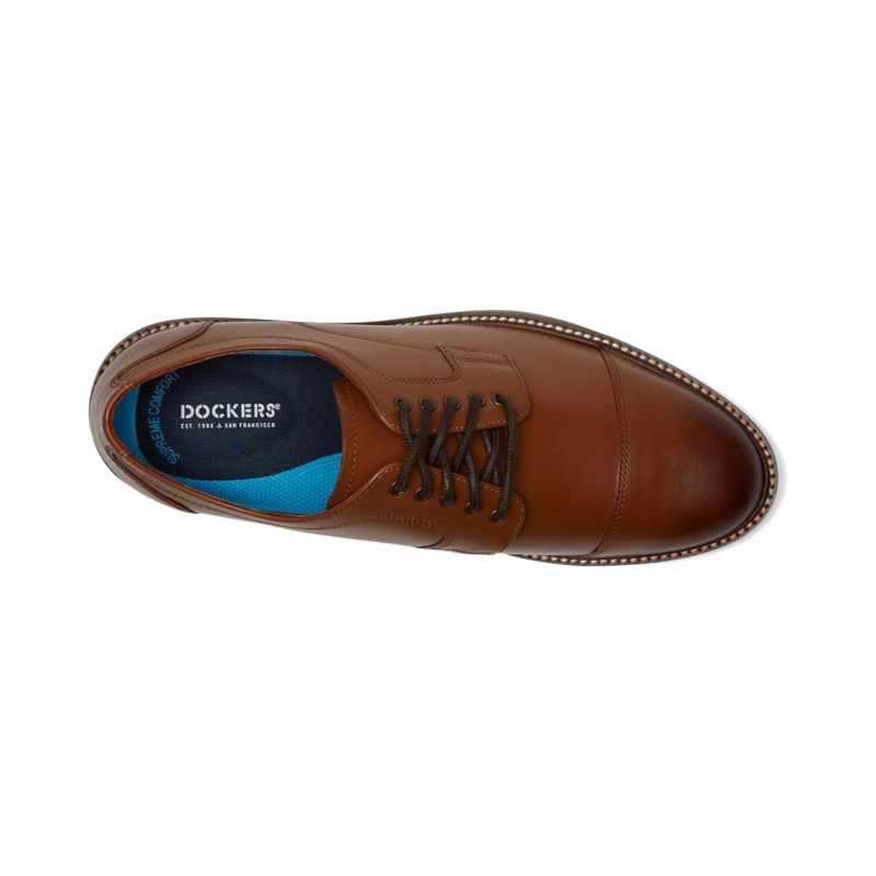 Stand out with your dashing finesse wearing the Dockers Longworth Oxfords. Designed in a low-top profile, the lace-up footwear features leather upper construction with detailed stitching and cap toe for additional durability.