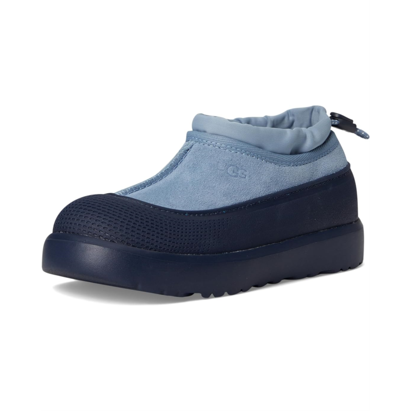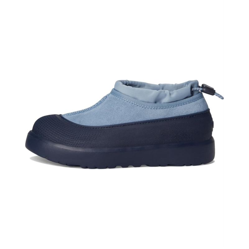 Keep their feet happy and dry in the UGG Kids Tasman Weather Hybrid shoes. This waterproof shoe offers a seam-sealed construction with a suede upper, elastic lace and toggle closure, round toe silhouette, and a heat embossed logo on upper.