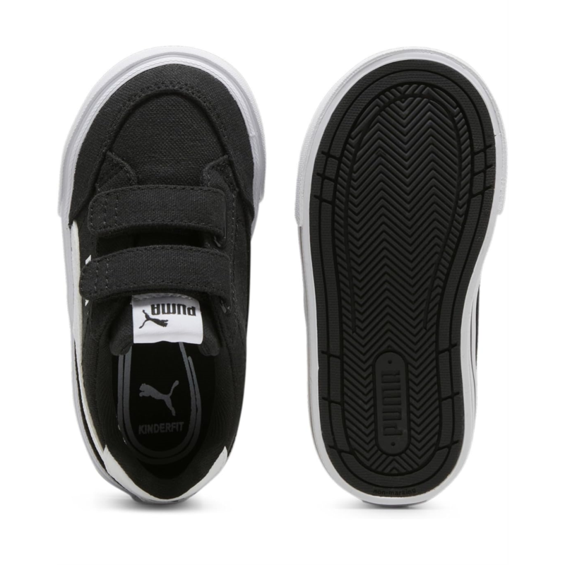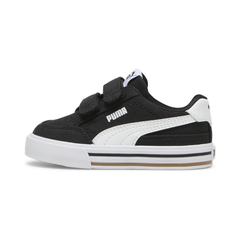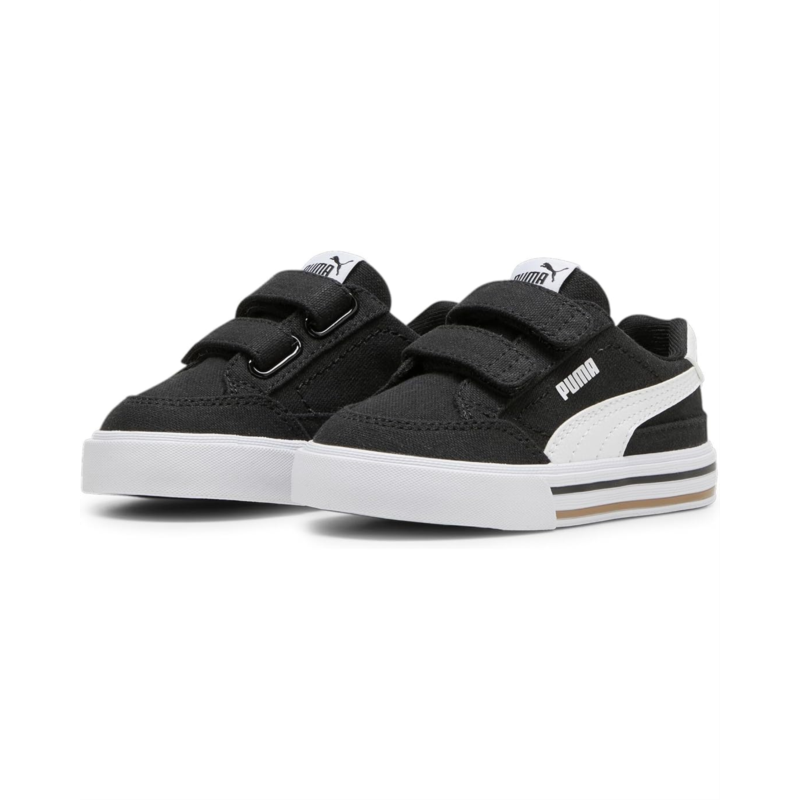 Style your look in the flawless and classic design of the PUMA Kids Court Classic Vulc Faux Suede Hook and Loop sneakers with contrasting shank and branding detail.