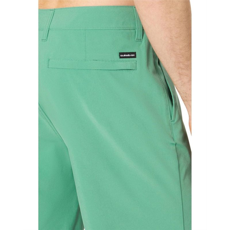 Casual and breathable, the Quiksilver 20'' Union Amphibian Shorts are a perfect addition to your everyday wear wardrobe. The pull-on style shorts have a comfortable elastic waistband with zip fly and button closure, front, and back pockets, and a classic fit. The back zipper pocket features a tab and a small brand logo patch.
