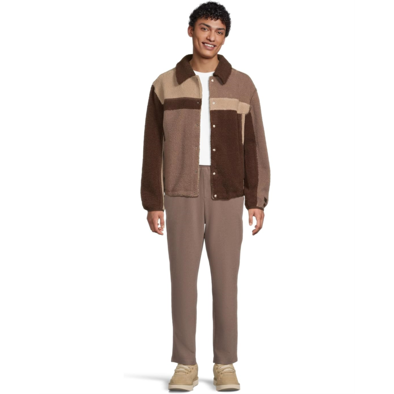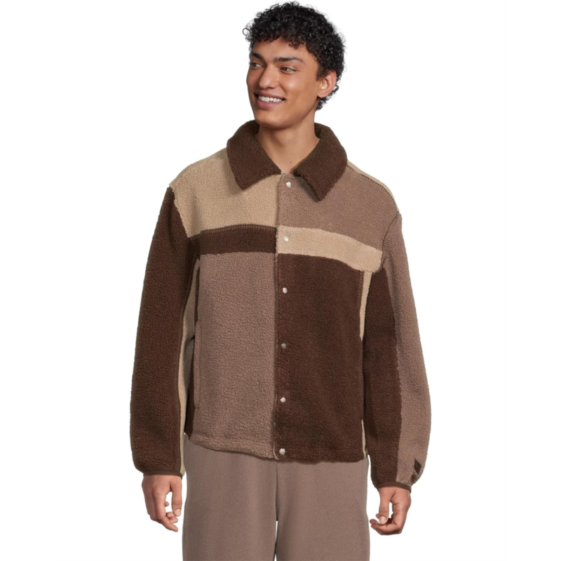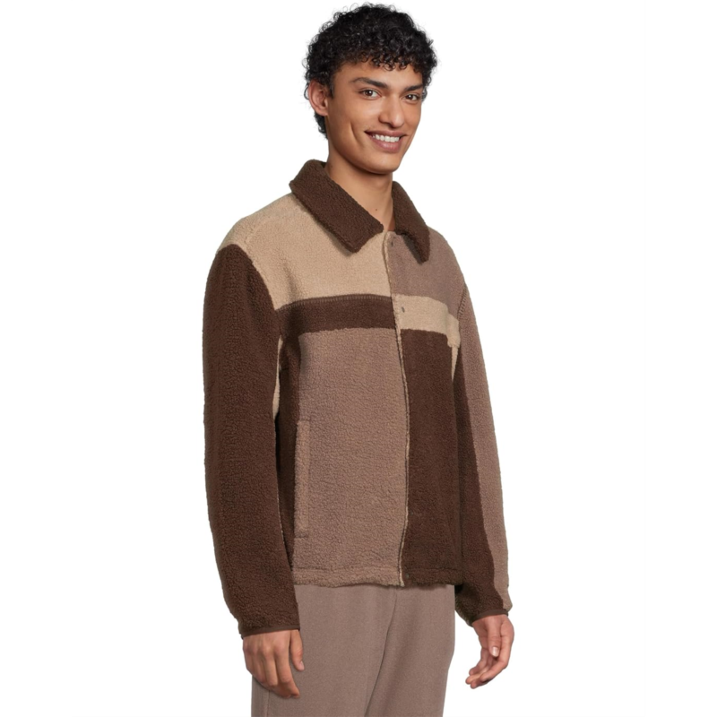 The UGG Lachlan Uggfluff Jacket is a color-blocked plush fleece jacket that is made from plush fleece bonded to soft micro fleece. It features whipstitch details and elastic binding at the sleeve cuffs. This fleece jacket is designed with long sleeves, a collared neckline, a UGG leather license plate label, and an elasticized bungee hem with The UGG Logo cord stoppers. Comfortable and cozy, this button-down jacket makes a great addition to your cold-weather wardrobe.