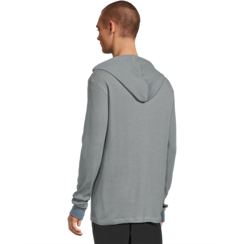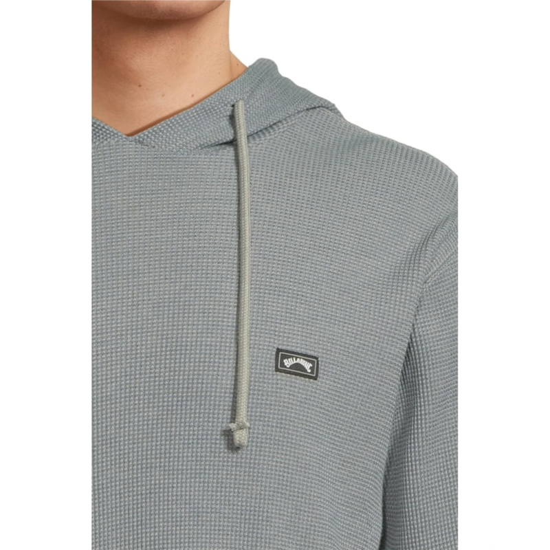 Exude a casual and chic style wearing the Billabong Keystone Pullover with a classic denim jeans or trousers. The thermal pullover features an attached hood with drawstring closure, long sleeves with contrasting cuffs, brand logo detail on the left chest, and a straight hem.