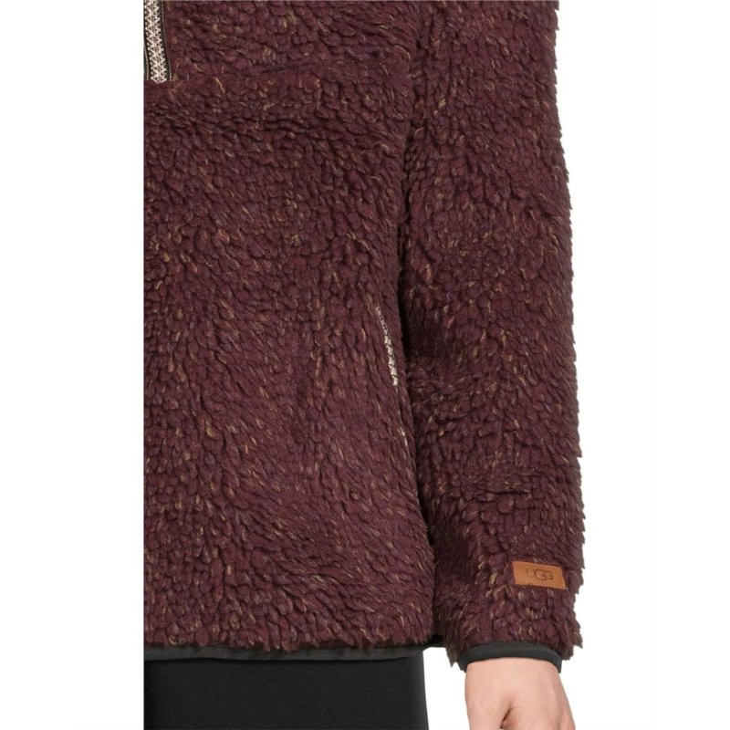 The UGG Uggbraid Confetti Half Zip is a plush fleece pullover that features an UGGbraid trim on the front placket and pocket openings. Unlined, this fleece jacket is crafted from polyester fabric that offers superior comfort and durability. It is styled with long sleeves, a collared neckline, a straight hem, and a UGG leather license plate label on the wearer''s left sleeve.