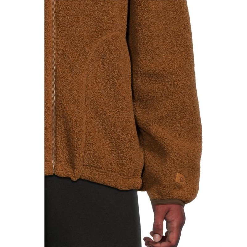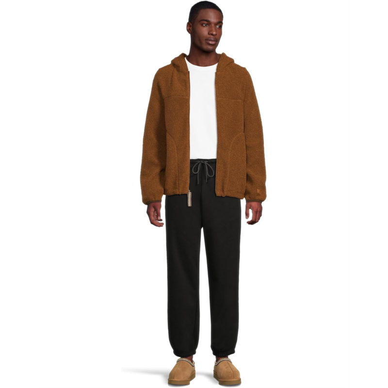 The UGG Uggbraid Full Zip Hoodie is made from plush fleece that is bonded to soft micro fleece. Its zippered front closure has a UGGbraid zipper pull for easy wear. This zip-up hoodie is styled with long sleeves, herringbone binding at the cuffs, an attached hood, and an elasticized bungee hem with The UGG Logo cord stoppers. Designed with a UGG leather license plate label, this fleece hoodie keeps you cozy and warm in the cold weather.