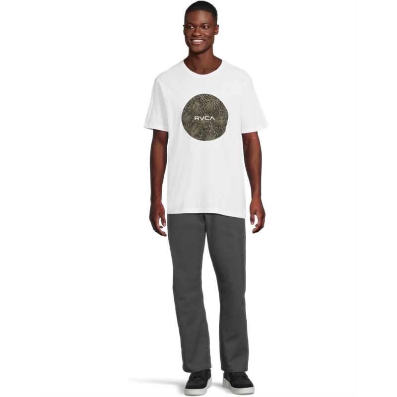 Meet up with friends at the local park wearing the RVCA Motors Short Sleeve tee. The Motors Tee is a standard fit, 100% combed cotton front filled print with screen inside neck. Its crew neck, short sleeves, and straight hem offer a standard length.